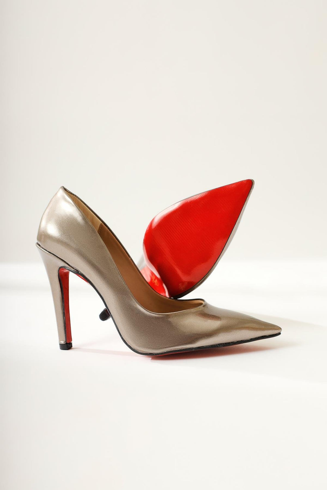 Pavinee Platin Rugan Sivri Burunlu Kırmızı Jurdanlı İnce Topuklu Ayakkabı