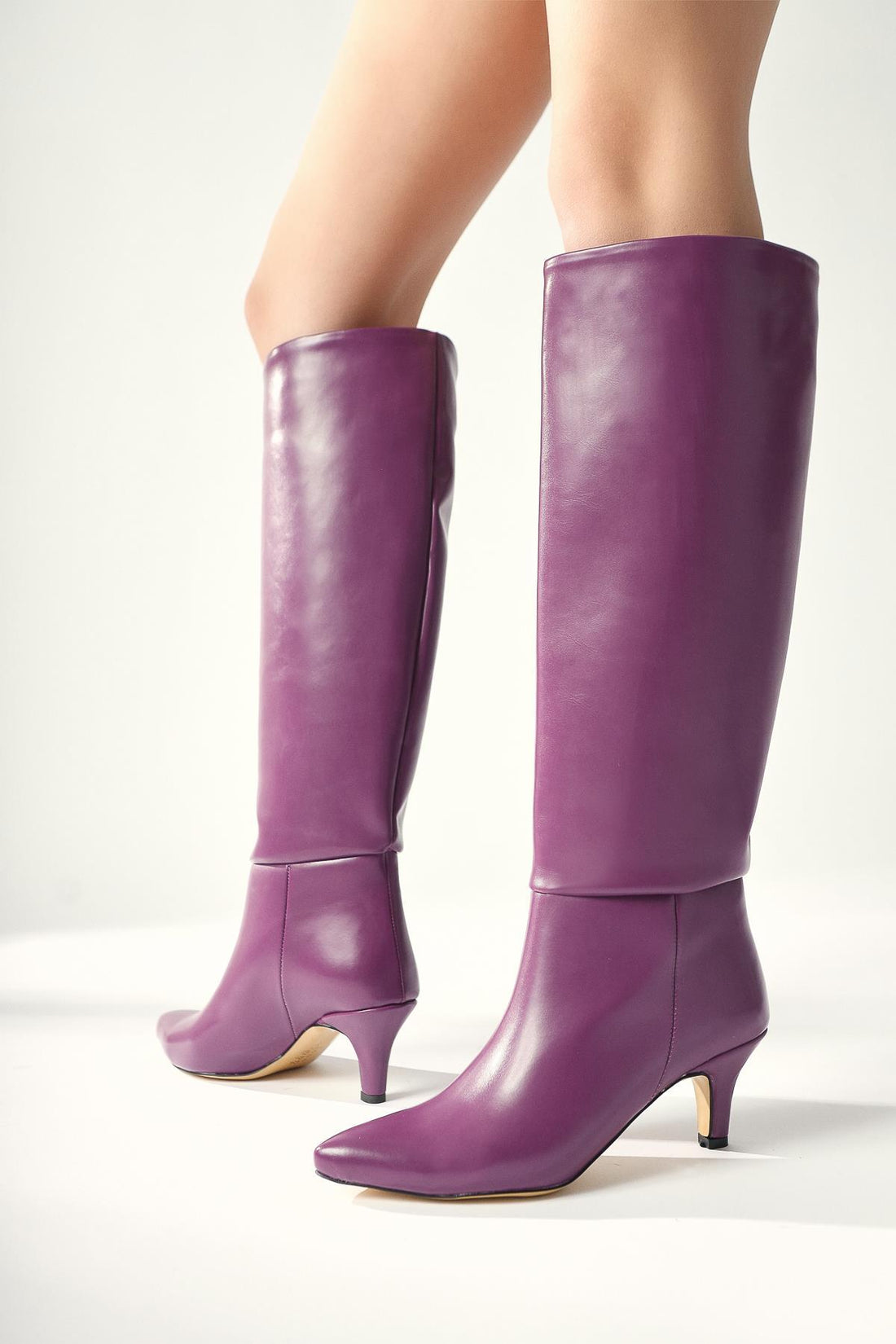 Milika Mor Sivri Burunlu Kısa Topuklu Çekme Çizme