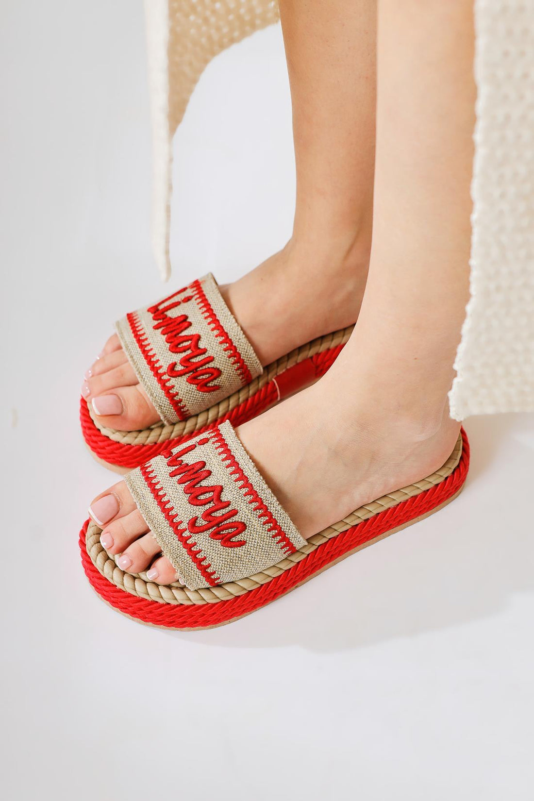 Vasana Kırmızı Yumuşak Dokulu Kalın Tabanlı Halat Terlik