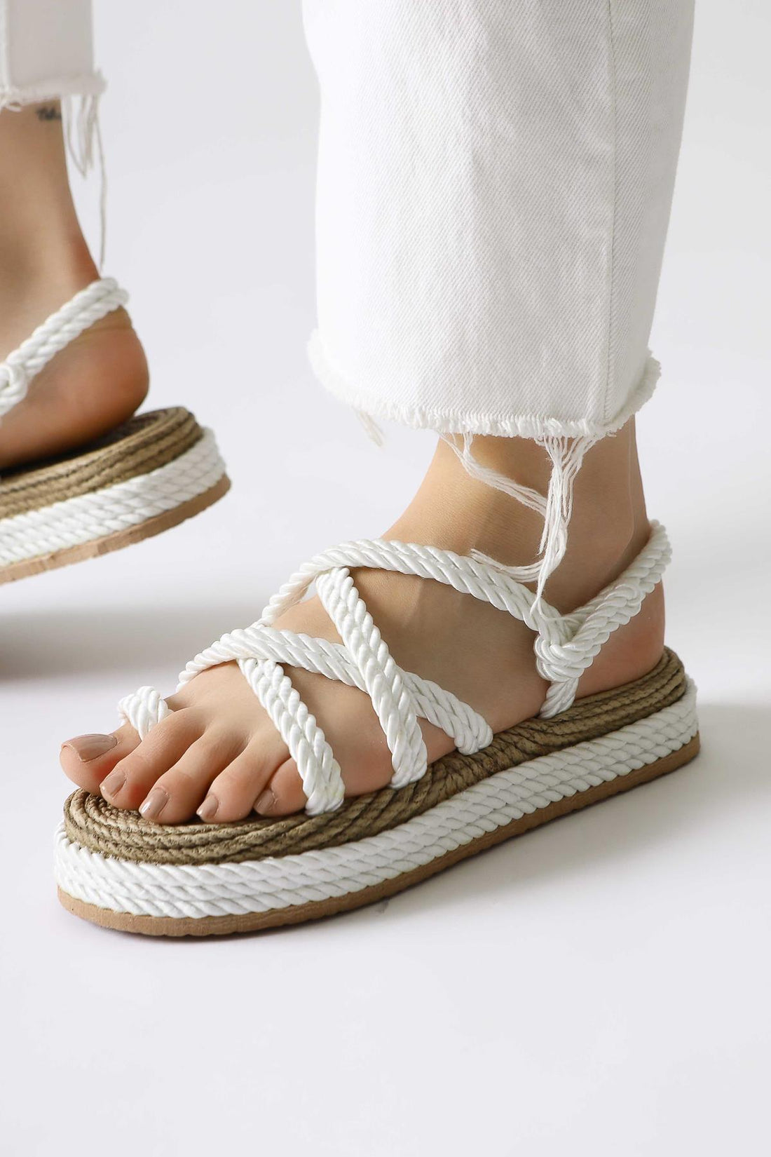 Spresa Beyaz Kalın Tabanlı Halat Sandalet
