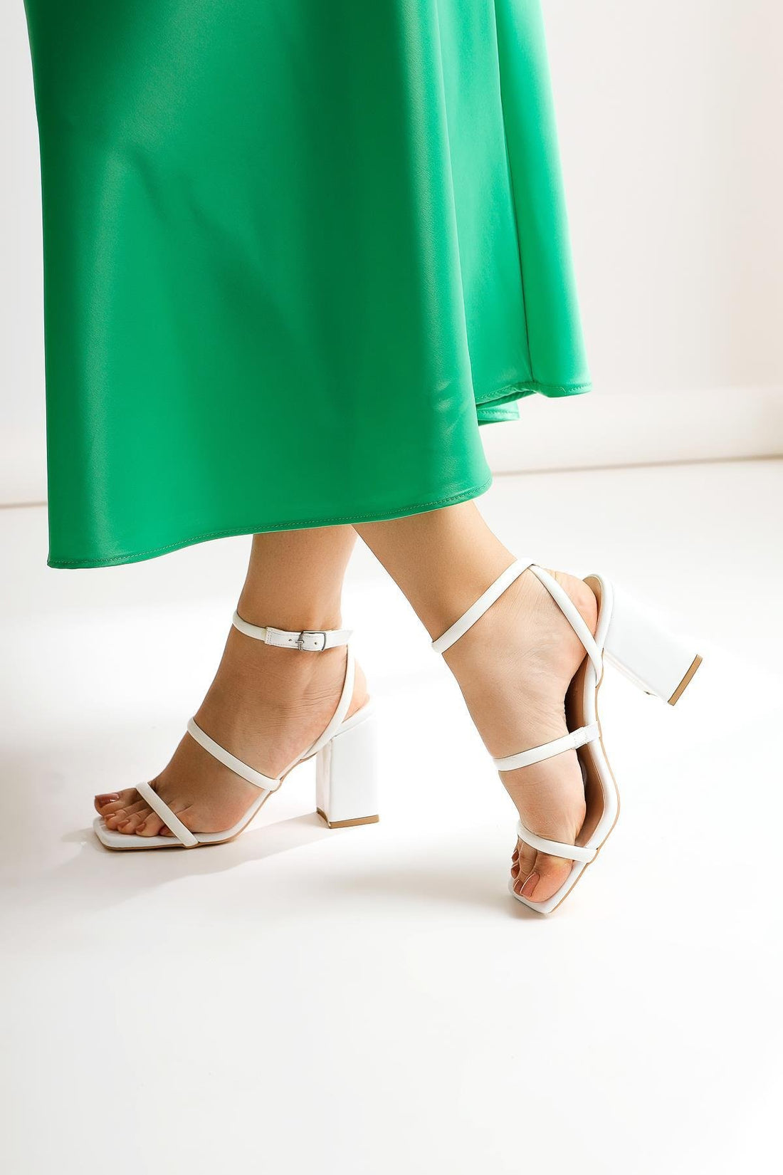 Kadra Beyaz Dolgu Topuklu Kadın Terlik