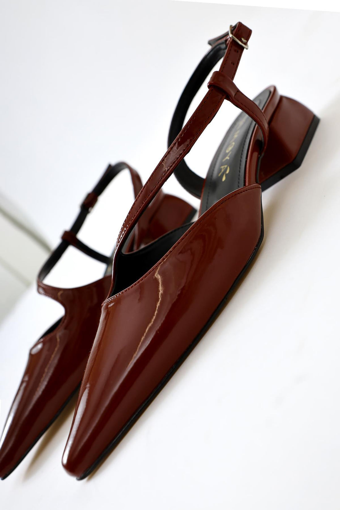Rashel Bordo Rugan Sivri Burunlu İnce Çapraz Bantlı Kısa Topuklu Ayakkabı