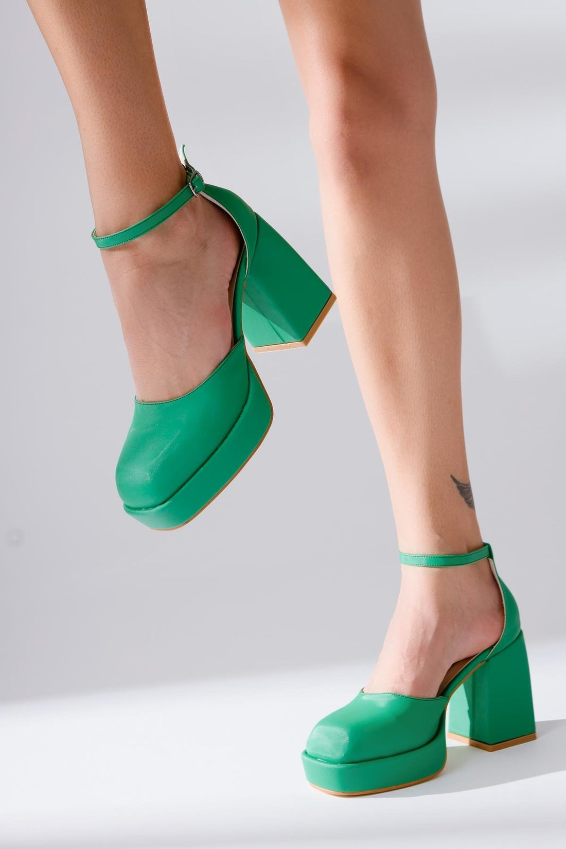 Persa Yeşil Saten Platformlu Kalın Ökçeli Yüksek Topuklu Ayakkabı