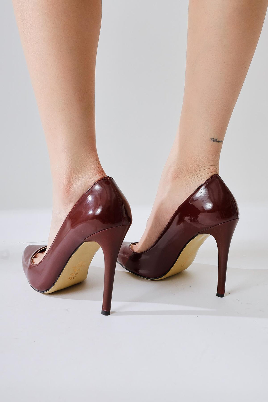 Tami Bordo Rugan Sivri Burunlu Yüksek Topuk Stiletto