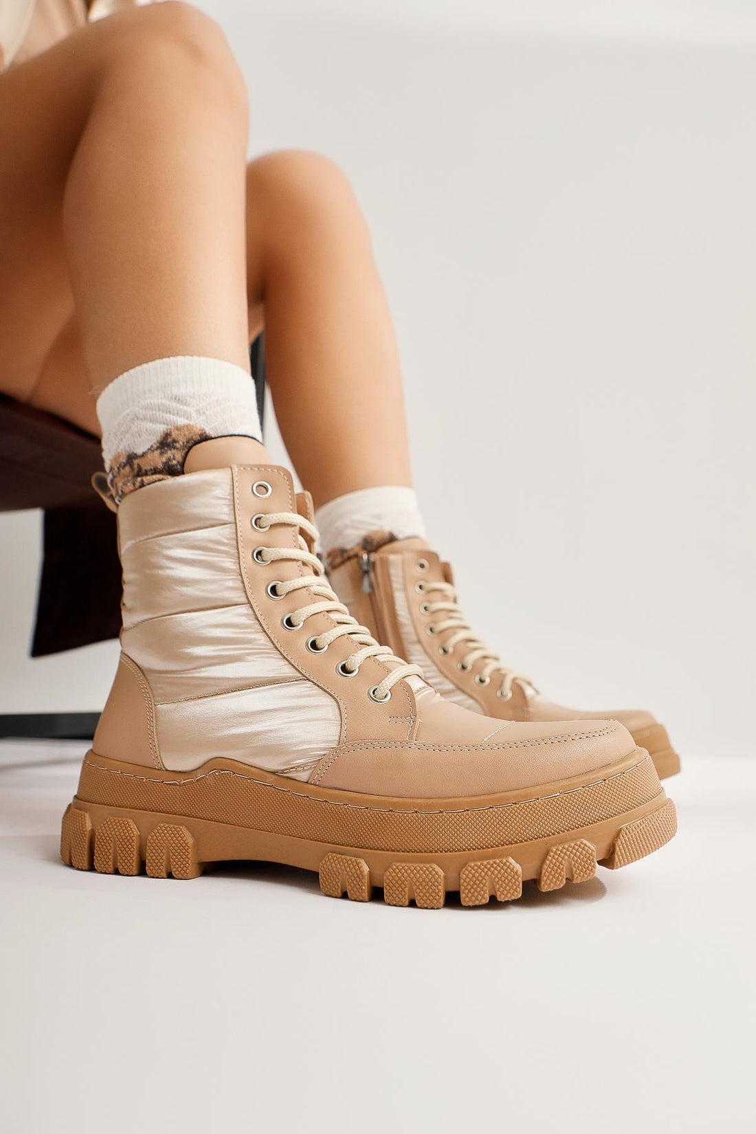 Meredith Bej Fosforlu Kumaş Detaylı Bağcıklı Bot