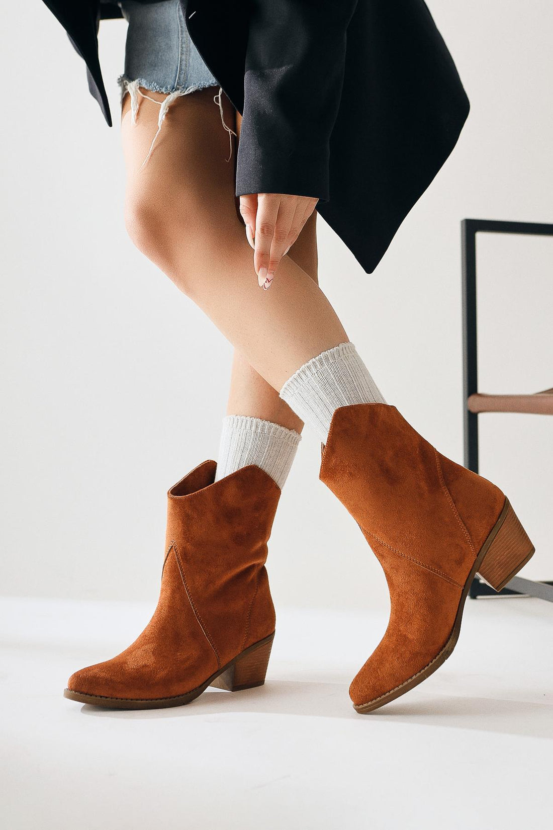 Knut Taba Süet Asimetrik Kesim Sivri Burunlu Western Bot