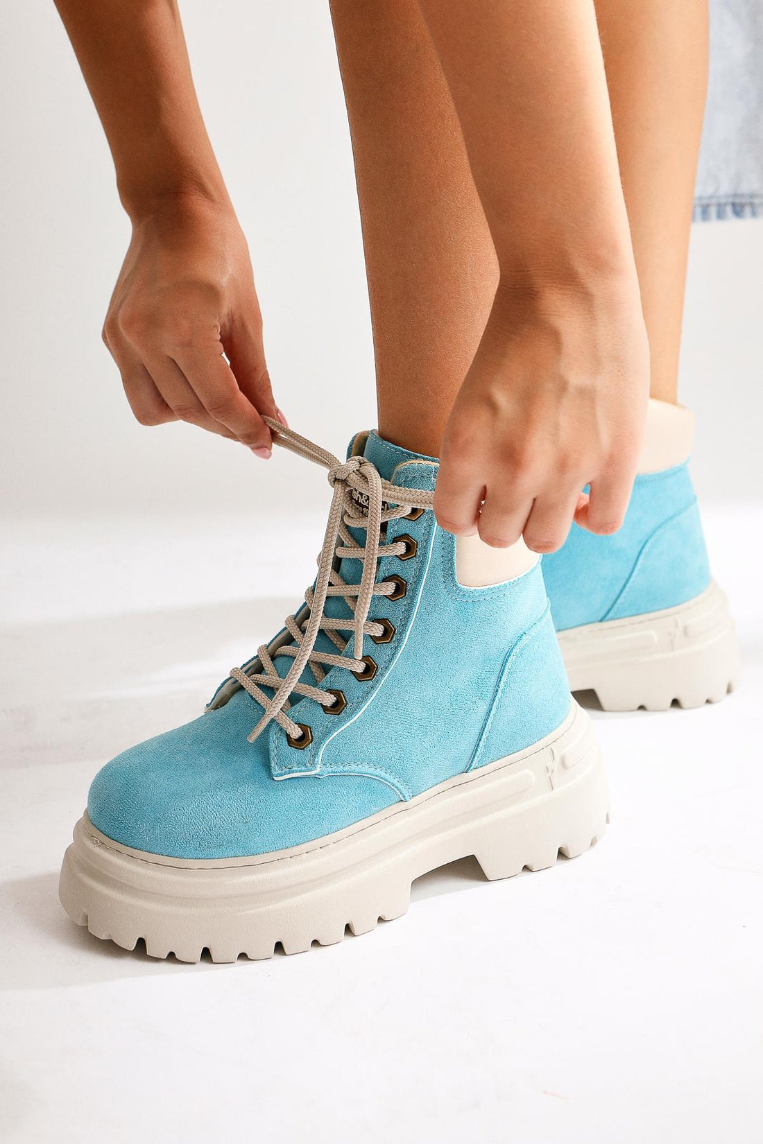 Phoi Mavi Süet Bej Kalın Tabanlı Bağcıklı Bot