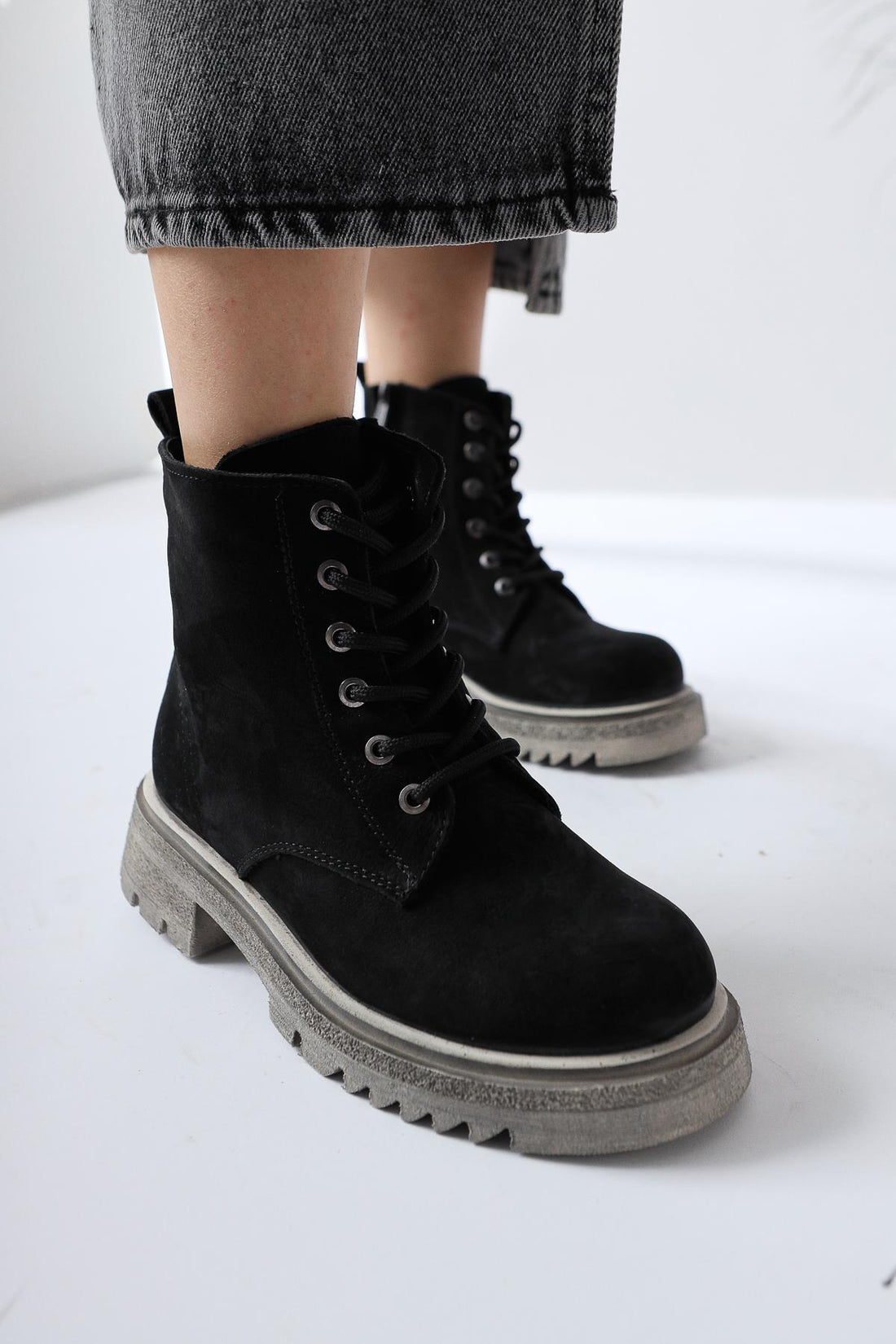 Hakiki Deri Britt-Louice Siyah Süet Bağcıklı Fermuarlı Bot