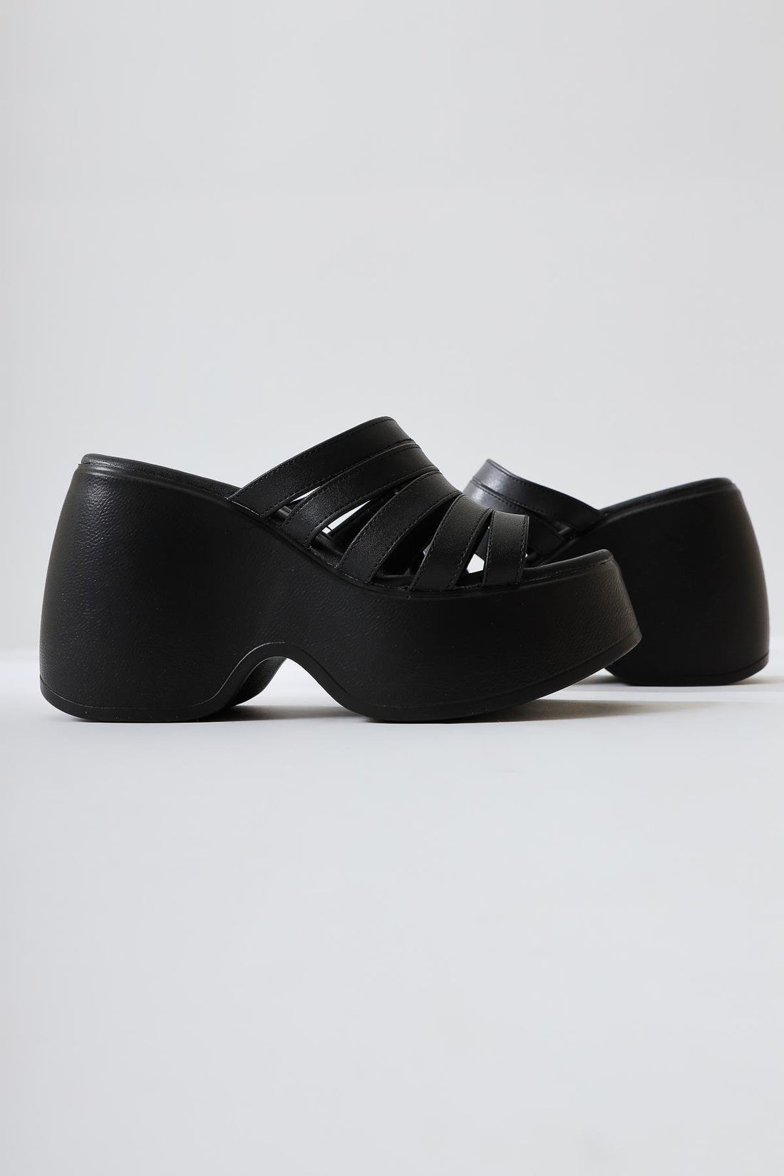 Margarit Siyah İnce Bantlı Dolgu Tabanlı Terlik