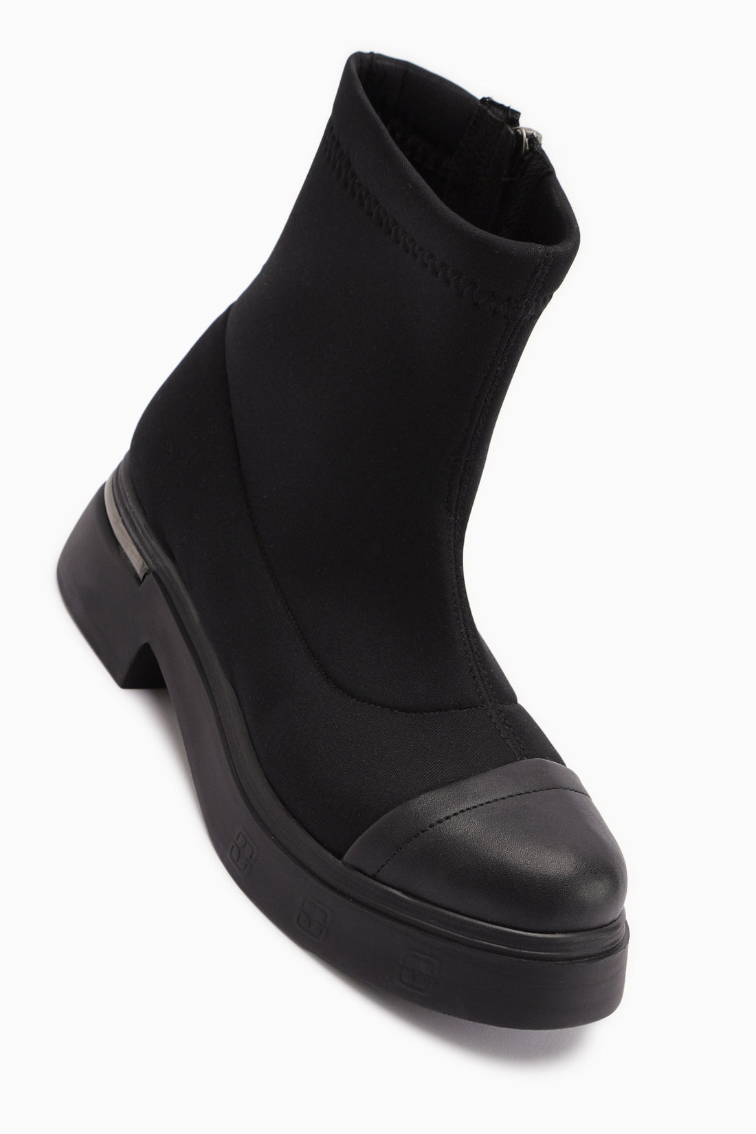 Kaiza Siyah Deri Detaylı Dalgıç Kumaş Bot