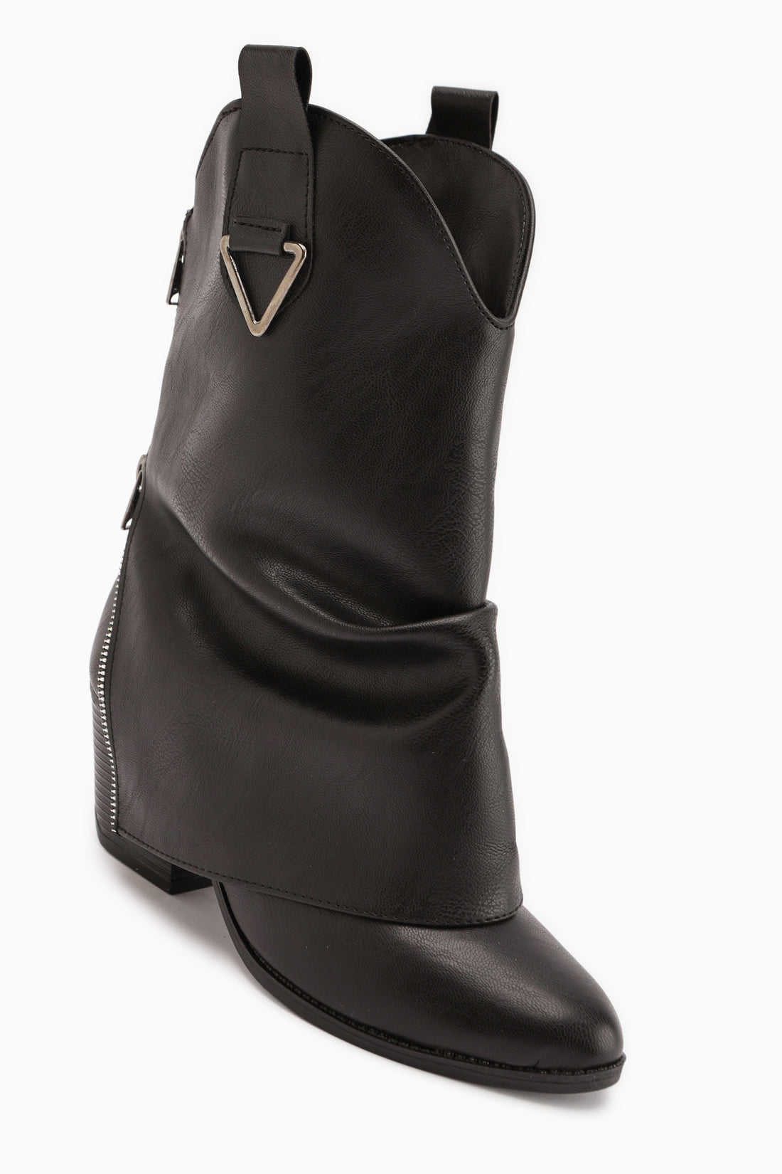 Narisa Siyah Rugan Önden Fermuarlı Kadın Streç Bot