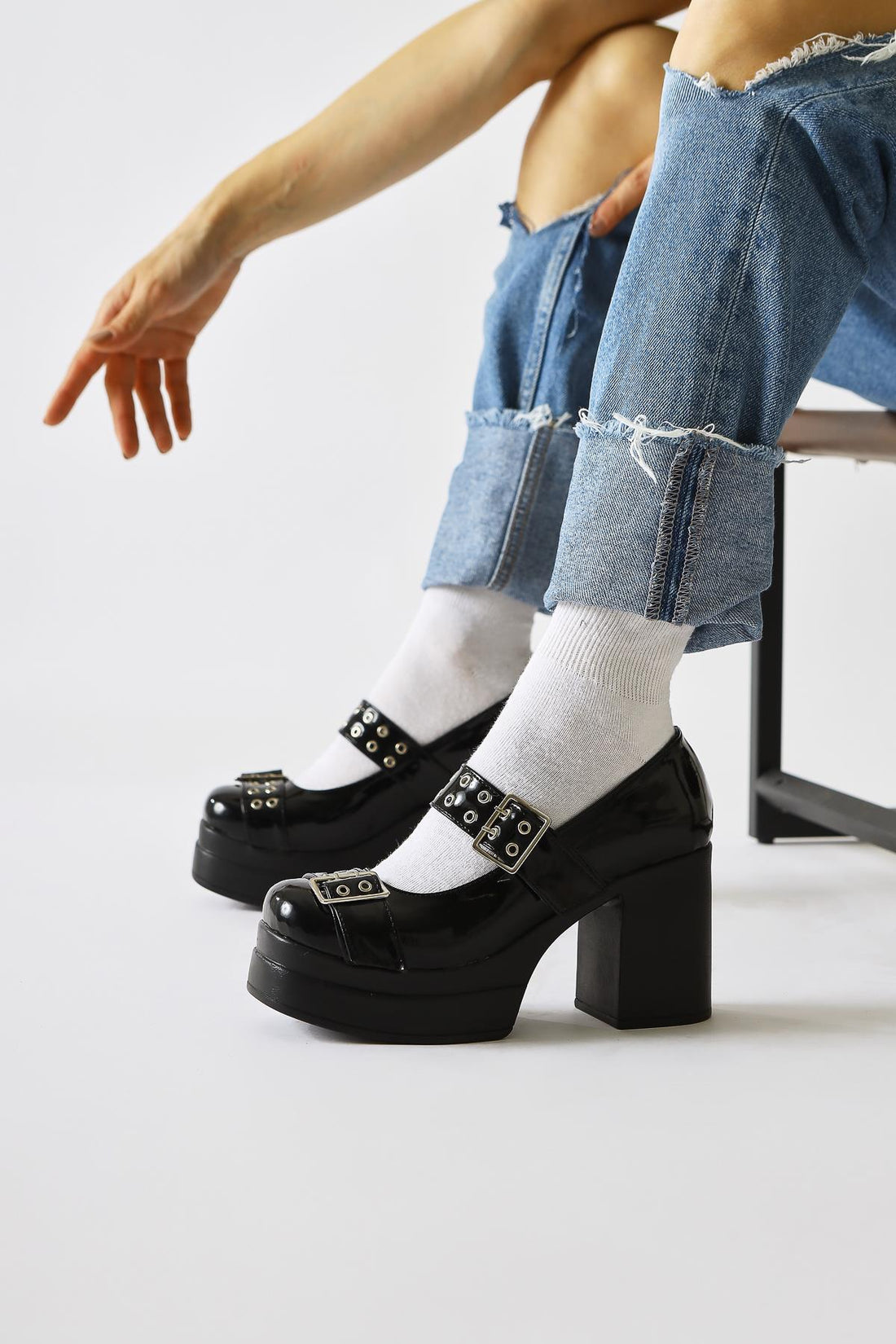 Florens Siyah Rugan Çift Bantlı Toka Detaylı Platformlu Günlük Ayakkabı