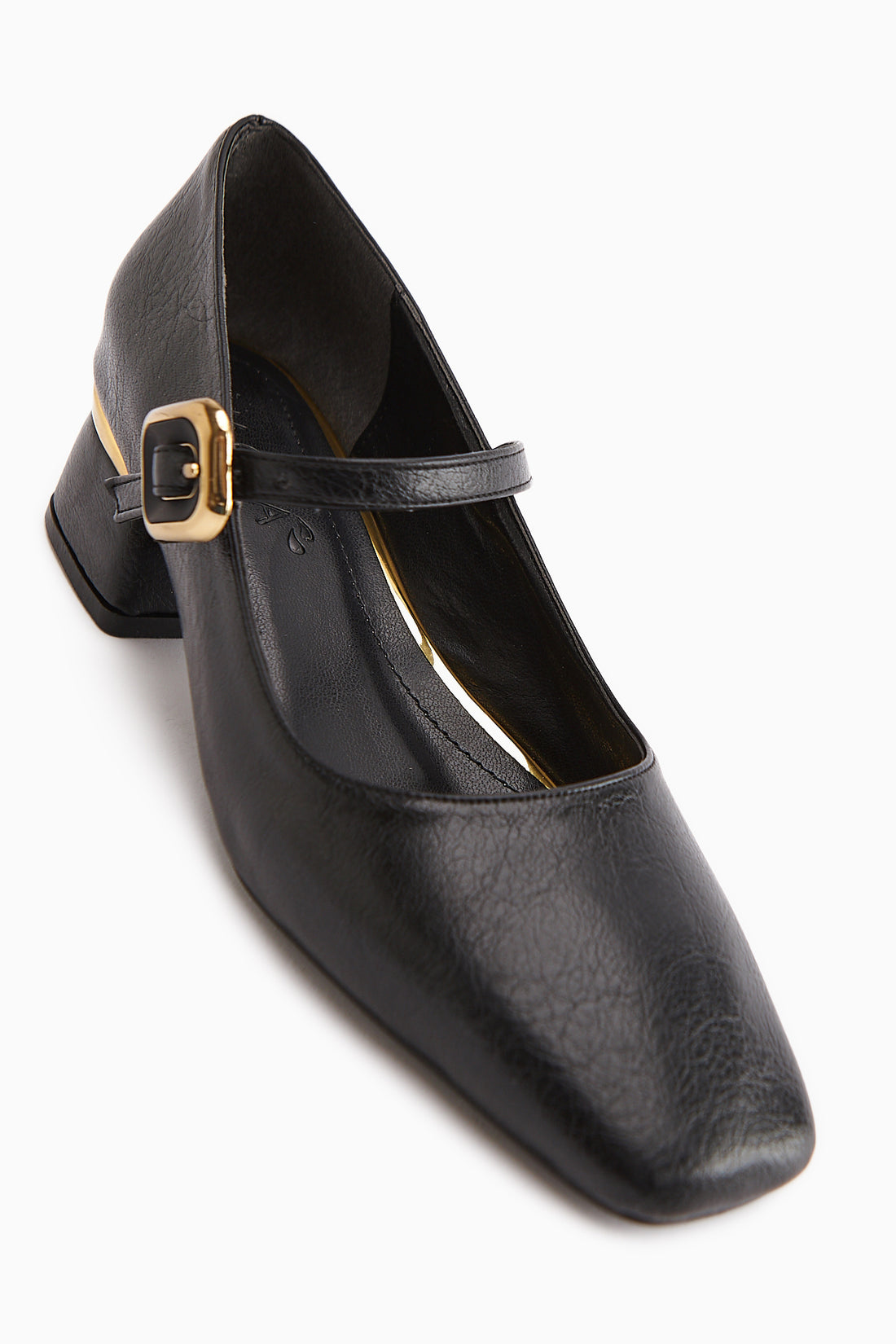 Lini Siyah Rugan Tokalı Kısa Topuklu Kadın Ayakkabı