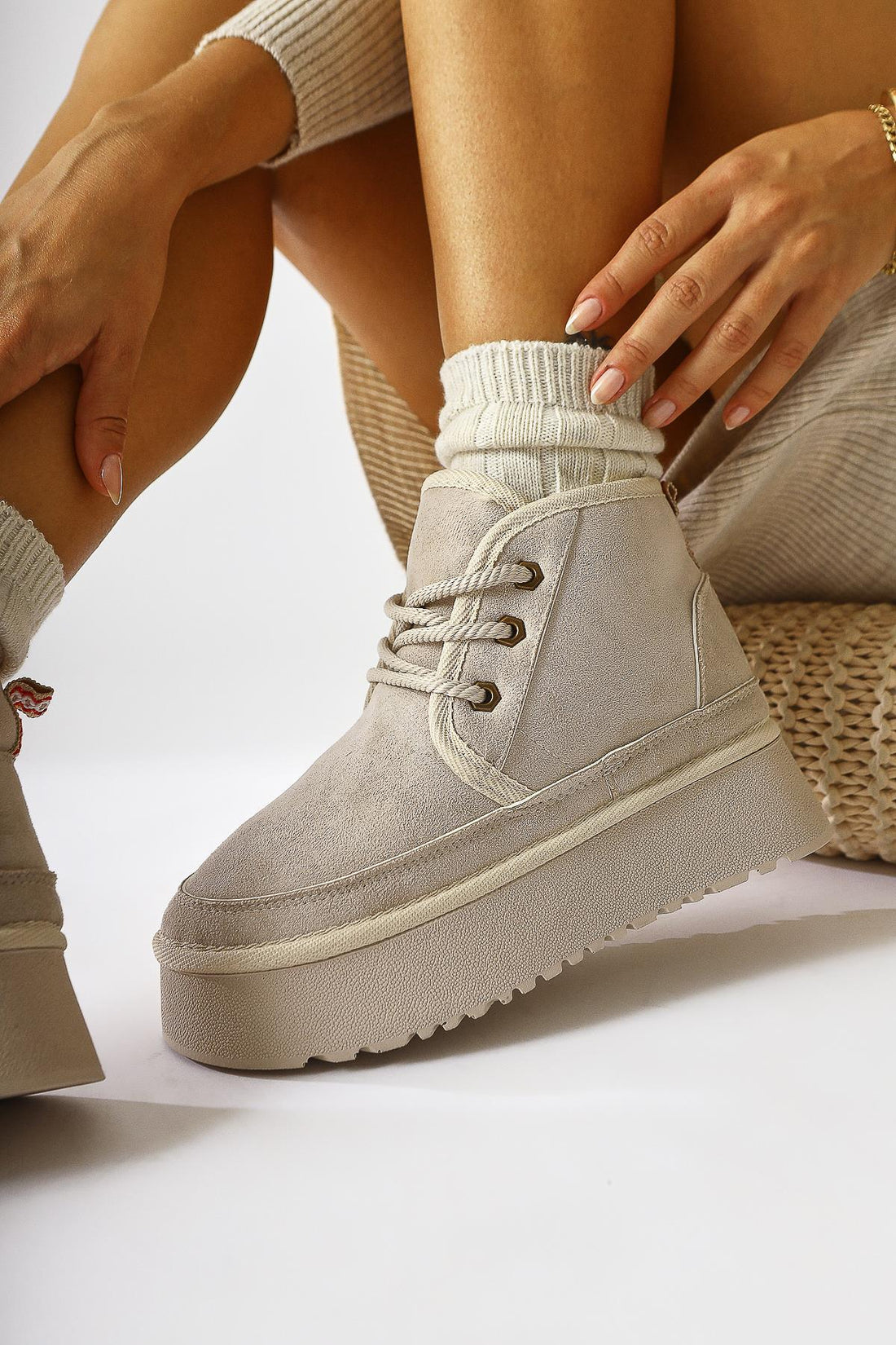 Maricris Bej Süet Kalın Tabanlı Bağcıklı Yarım Bot