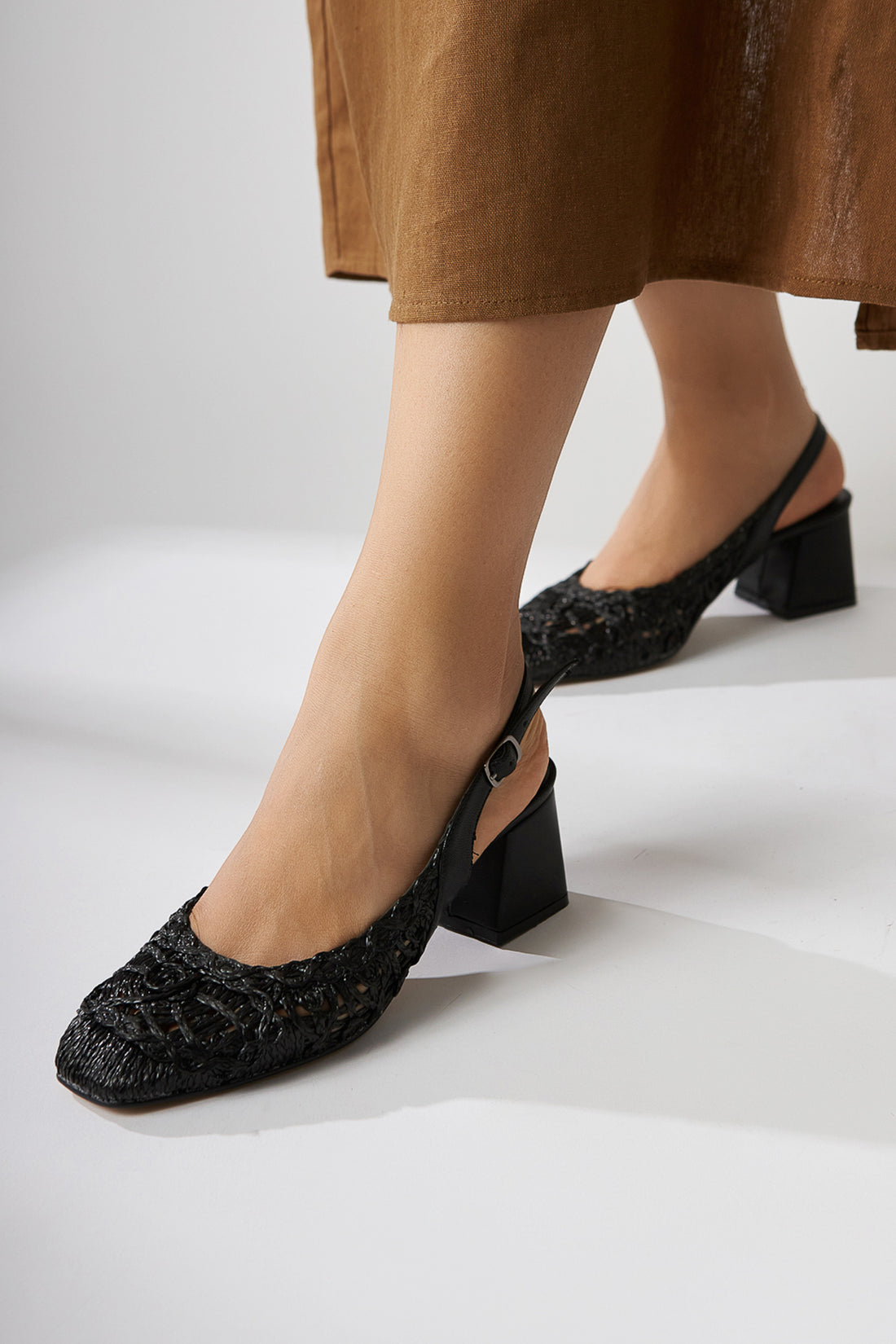 Ronja Siyah Küt Burunlu Örgü Kadın Sandalet