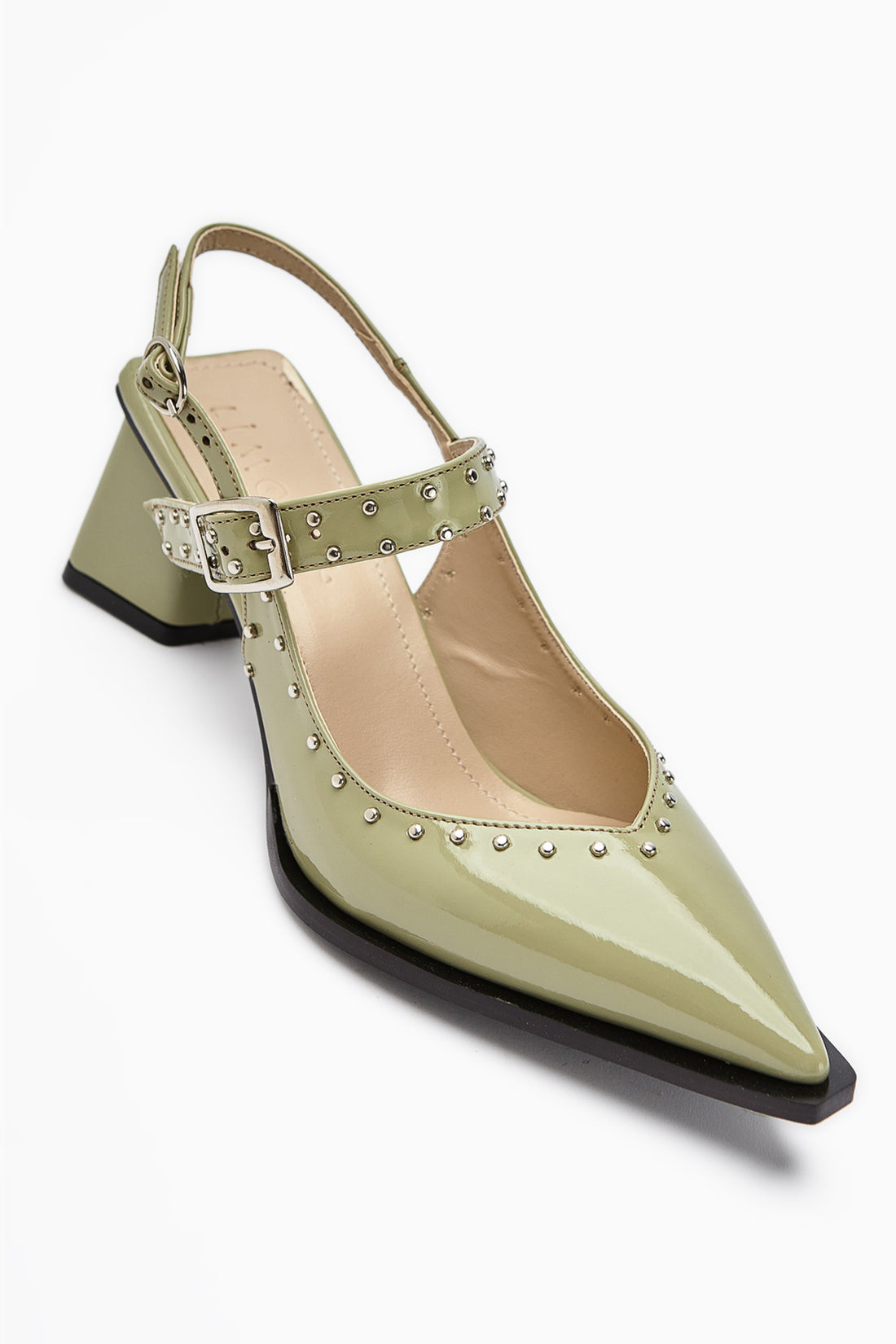 Nuria Yeşil Rugan Sivri Burunlu Bantlı Kadın Sandalet
