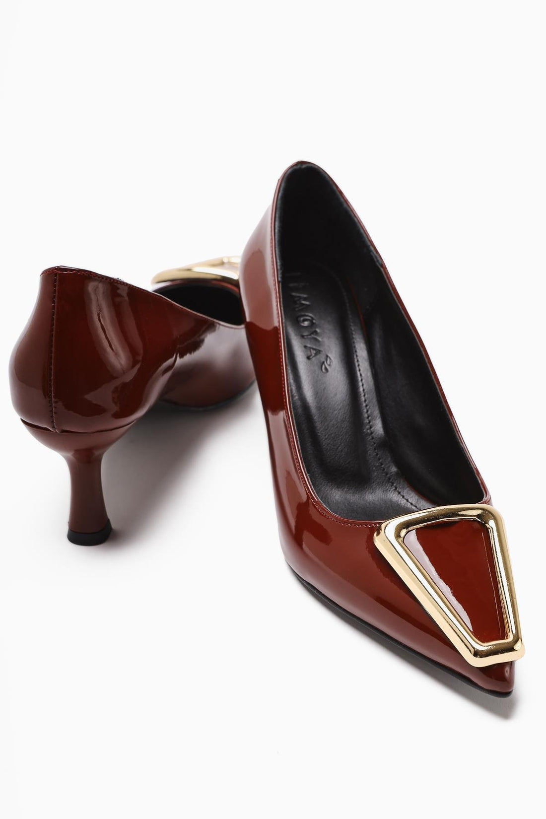 Carla Bordo Rugan Sivri Burunlu Toka Detaylı Topuklu Kadın Ayakkabı
