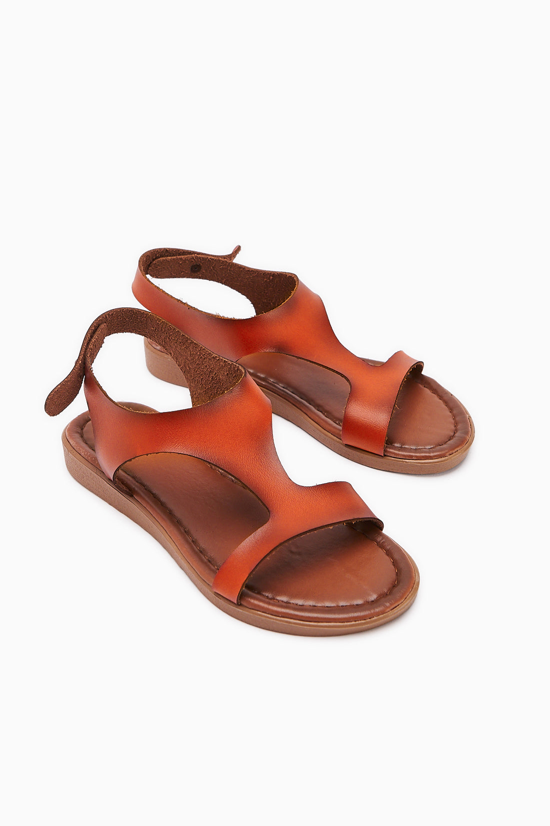 Hakiki Deri Coral Oranj Asimetrik Kesim Sandalet