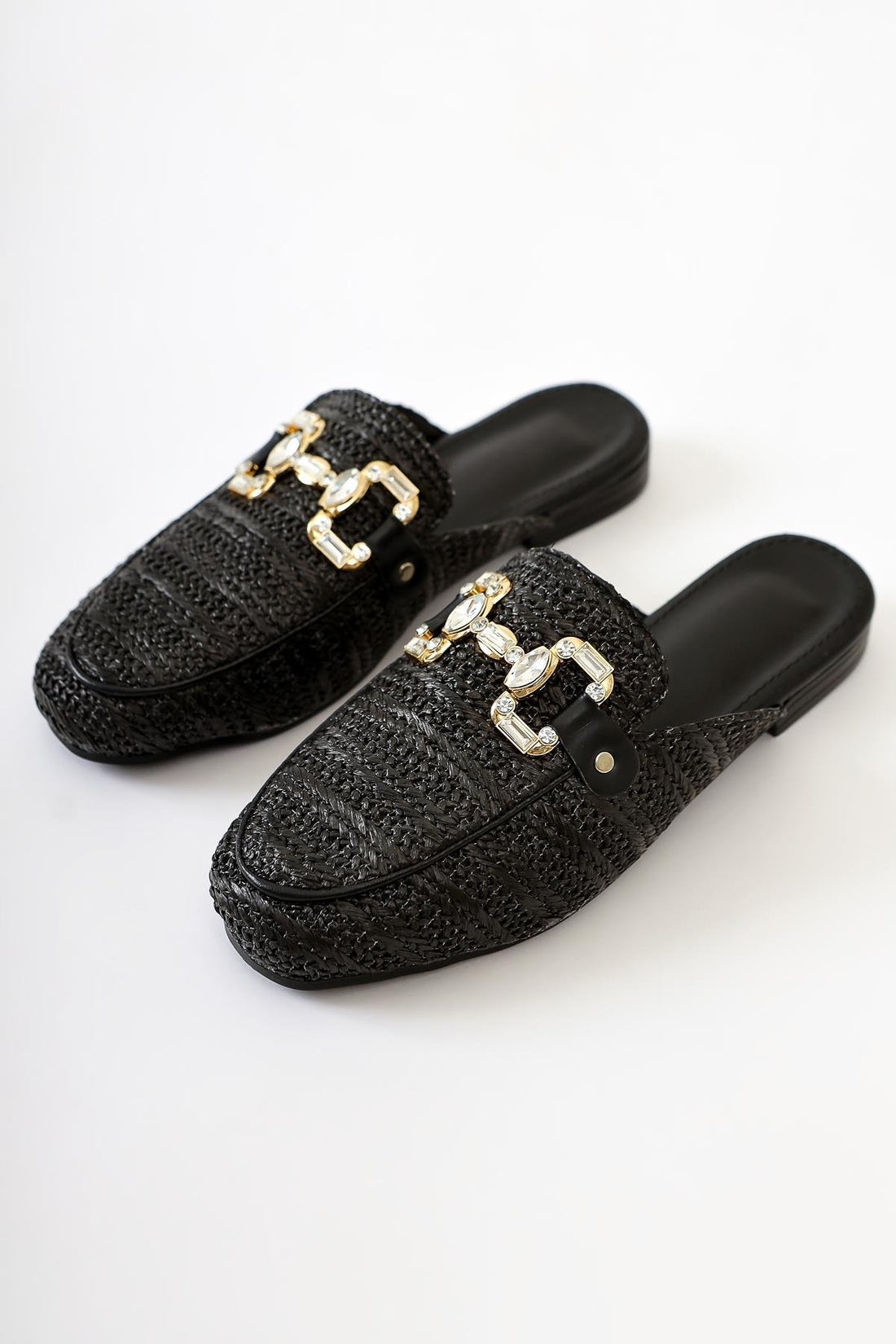 Benny Siyah Taşlı Toka Detaylı Hasır Terlik