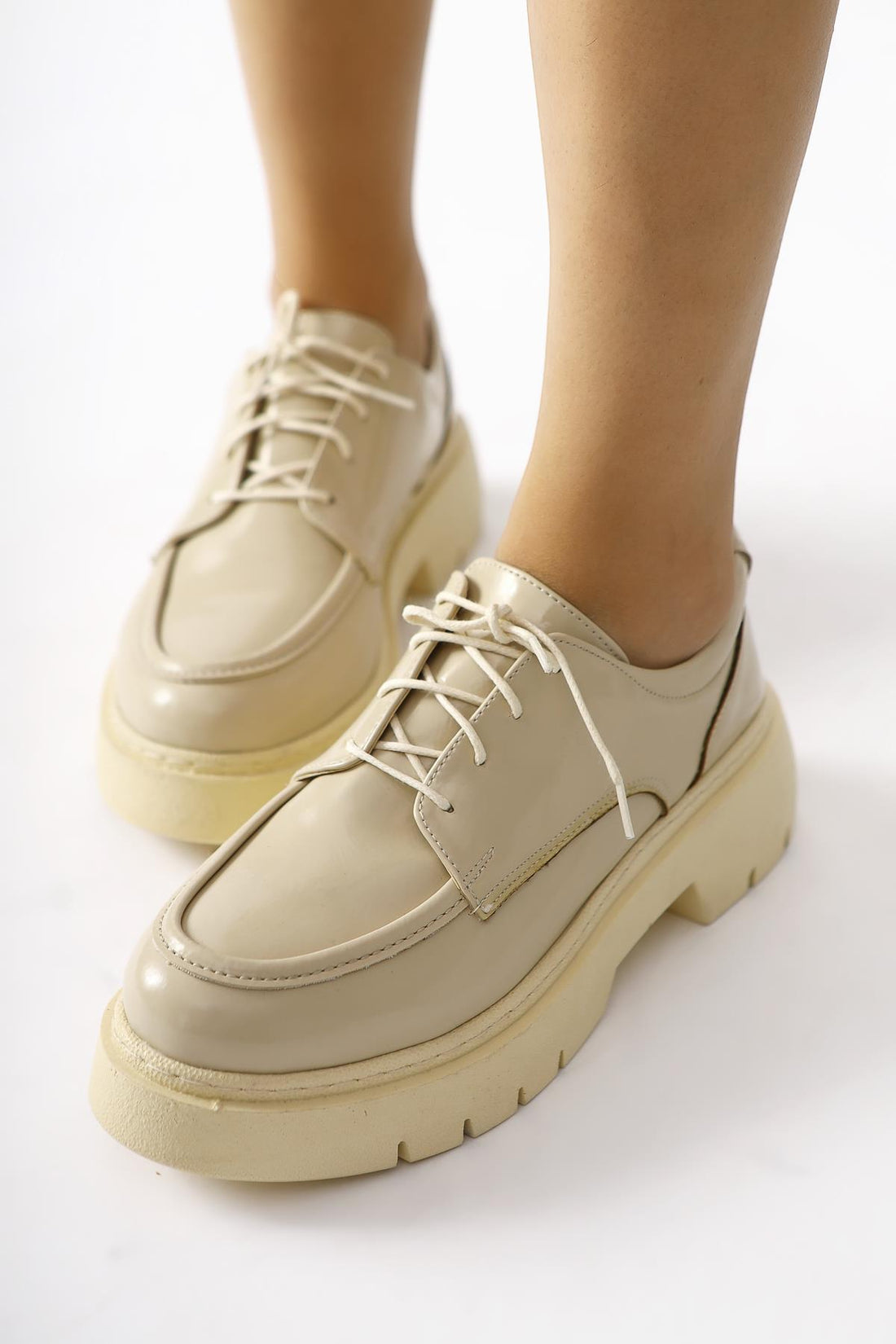 Callie Nud Kırışık Rugan Bağcıklı Makosen Ayakkabı