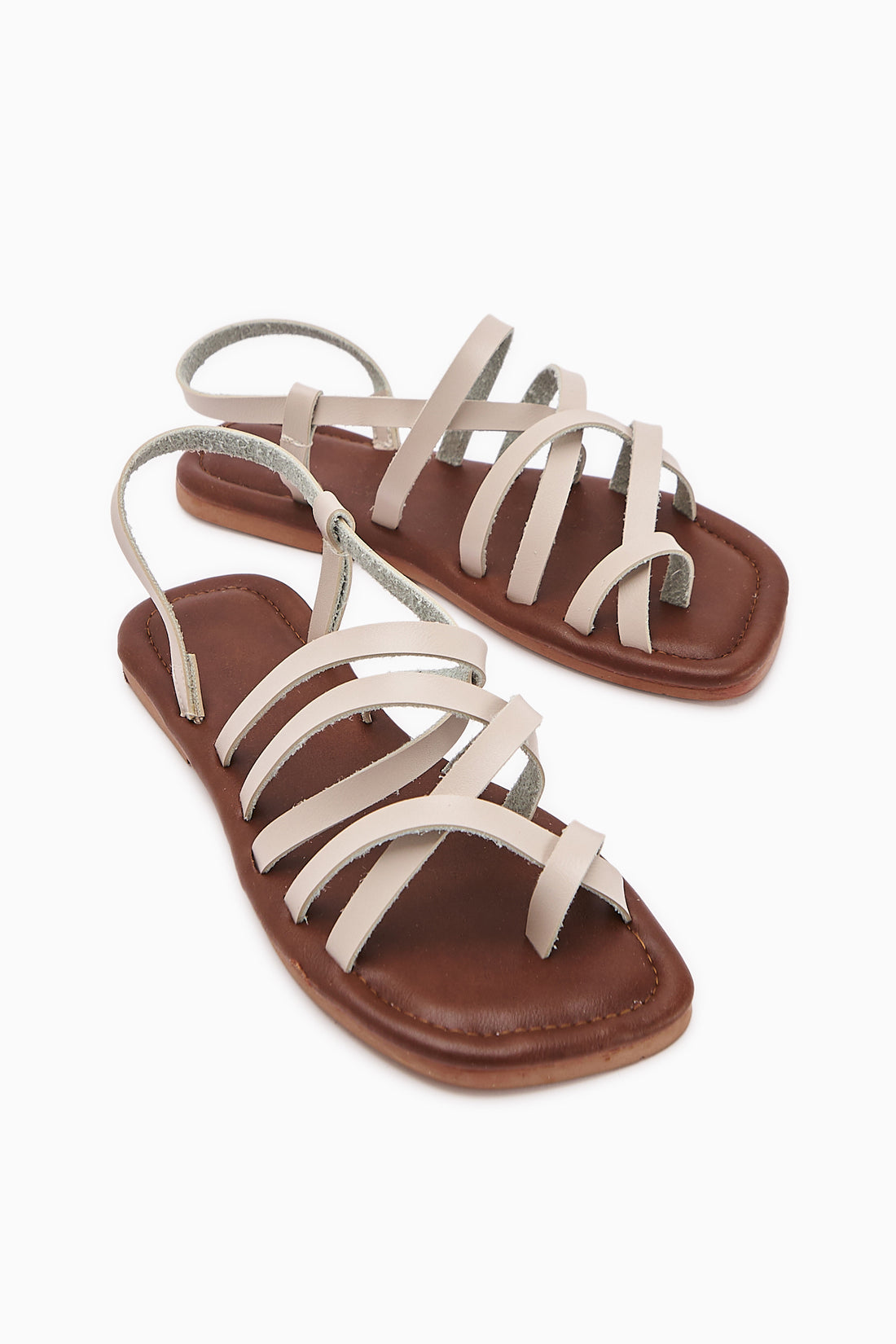 Hakiki Deri Lucile Krem Çapraz İnce Bantlı Sandalet