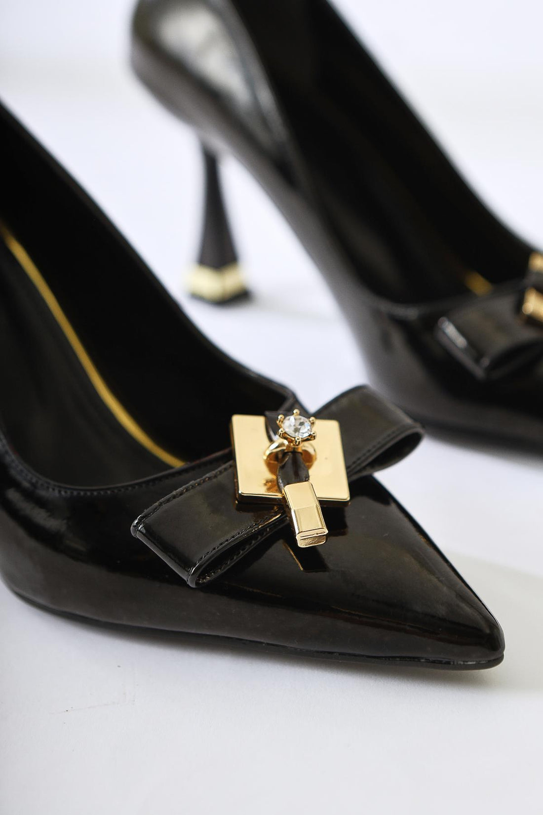 Mimosa Siyah Rugan Sivri Burunlu Tektaş Toka Detaylı Topuklu Ayakkabı