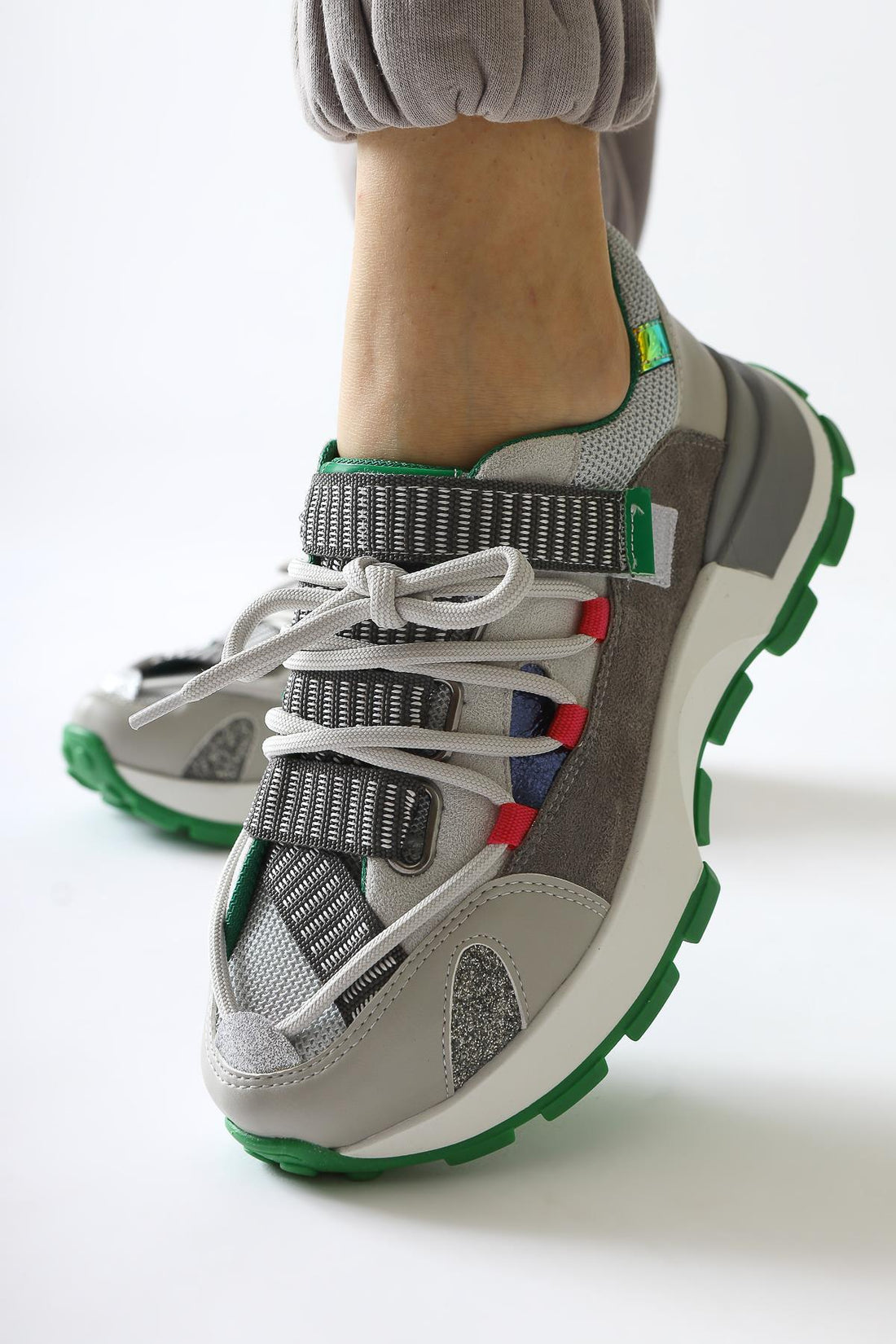 Netta Gri File Detaylı Bağcıklı Sneakers