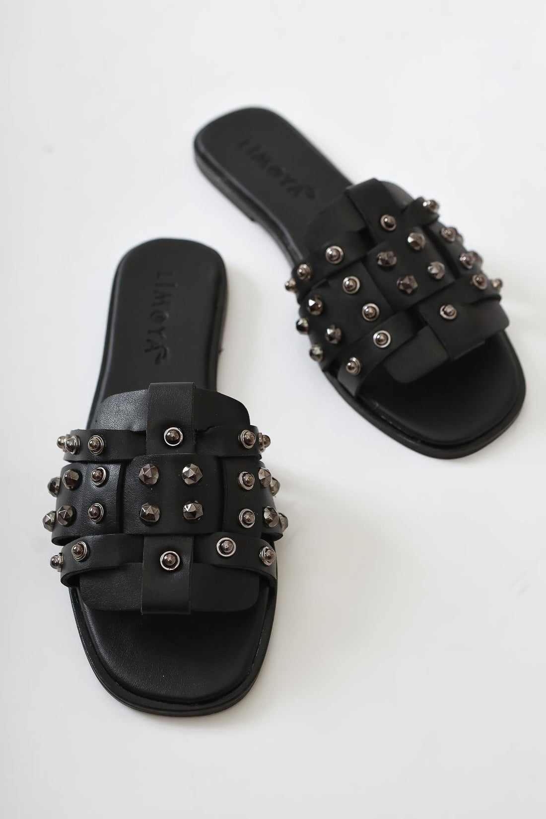 Zea Siyah Taş Örgülü İnce Topuklu Ayakkabı