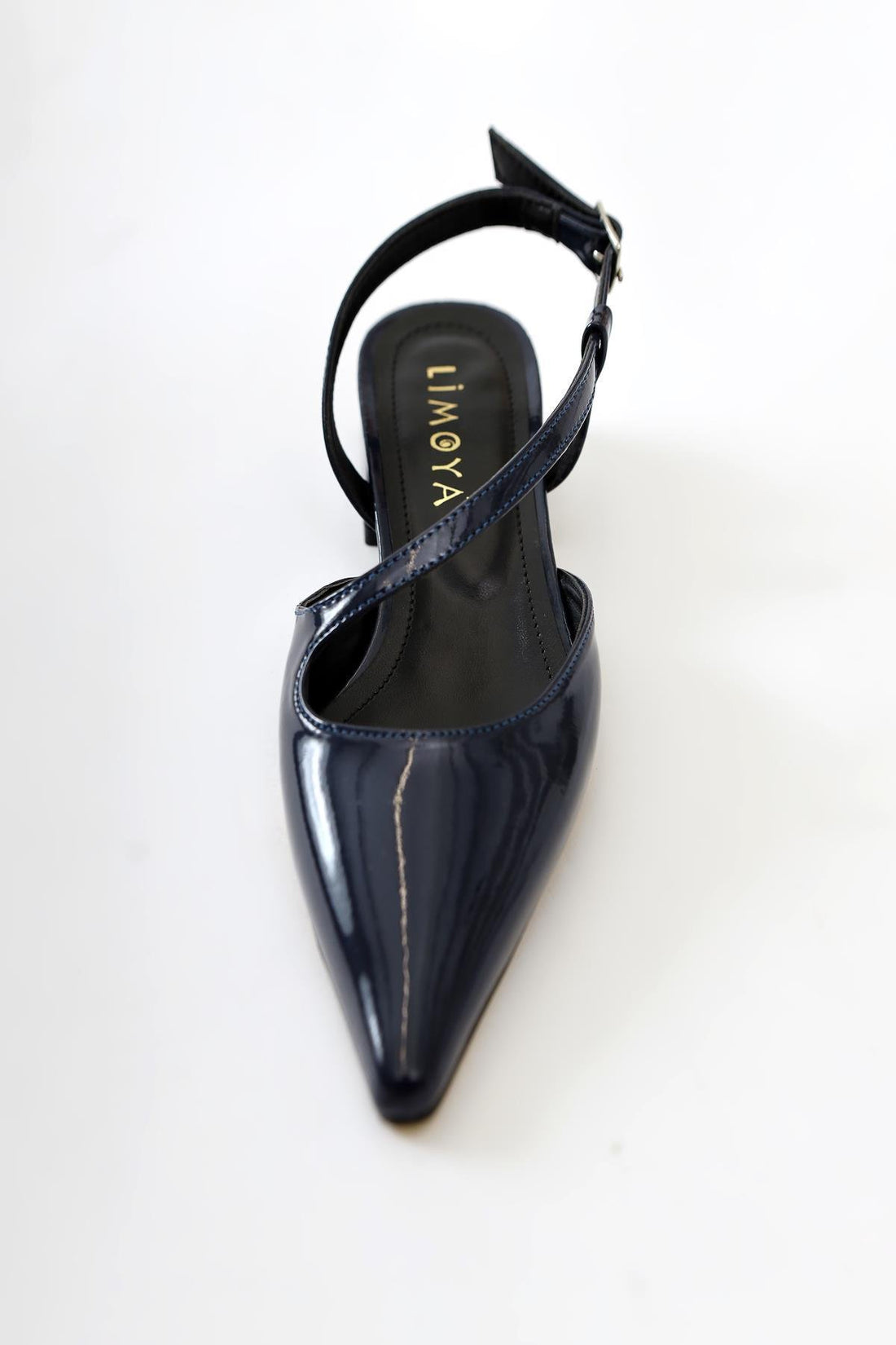 Bess Lacivert Rugan Sivri Burunlu Kısa Topuklu Ayakkabı