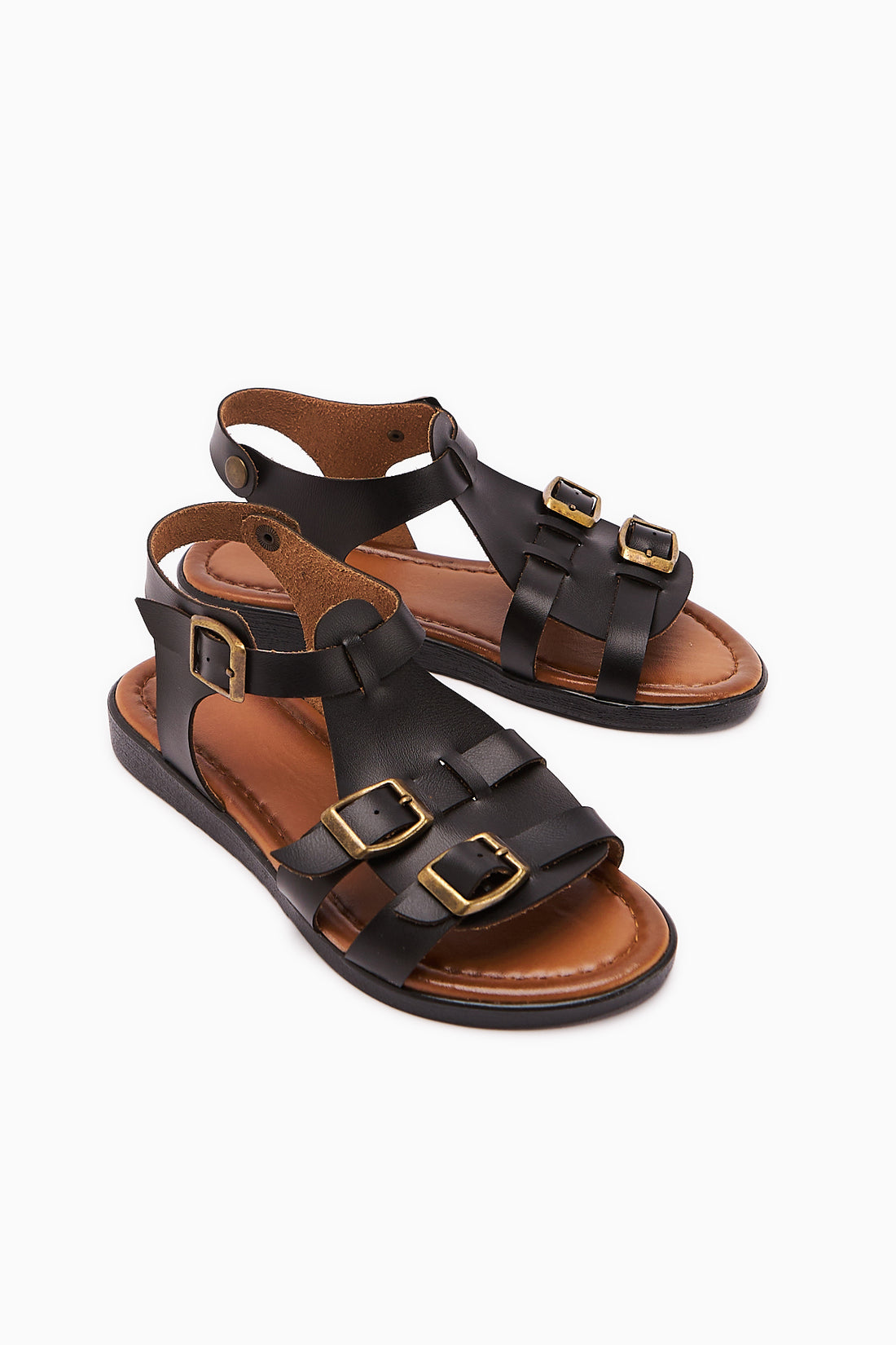 Hakiki Deri Desta Siyah Toka Detaylı Sandalet