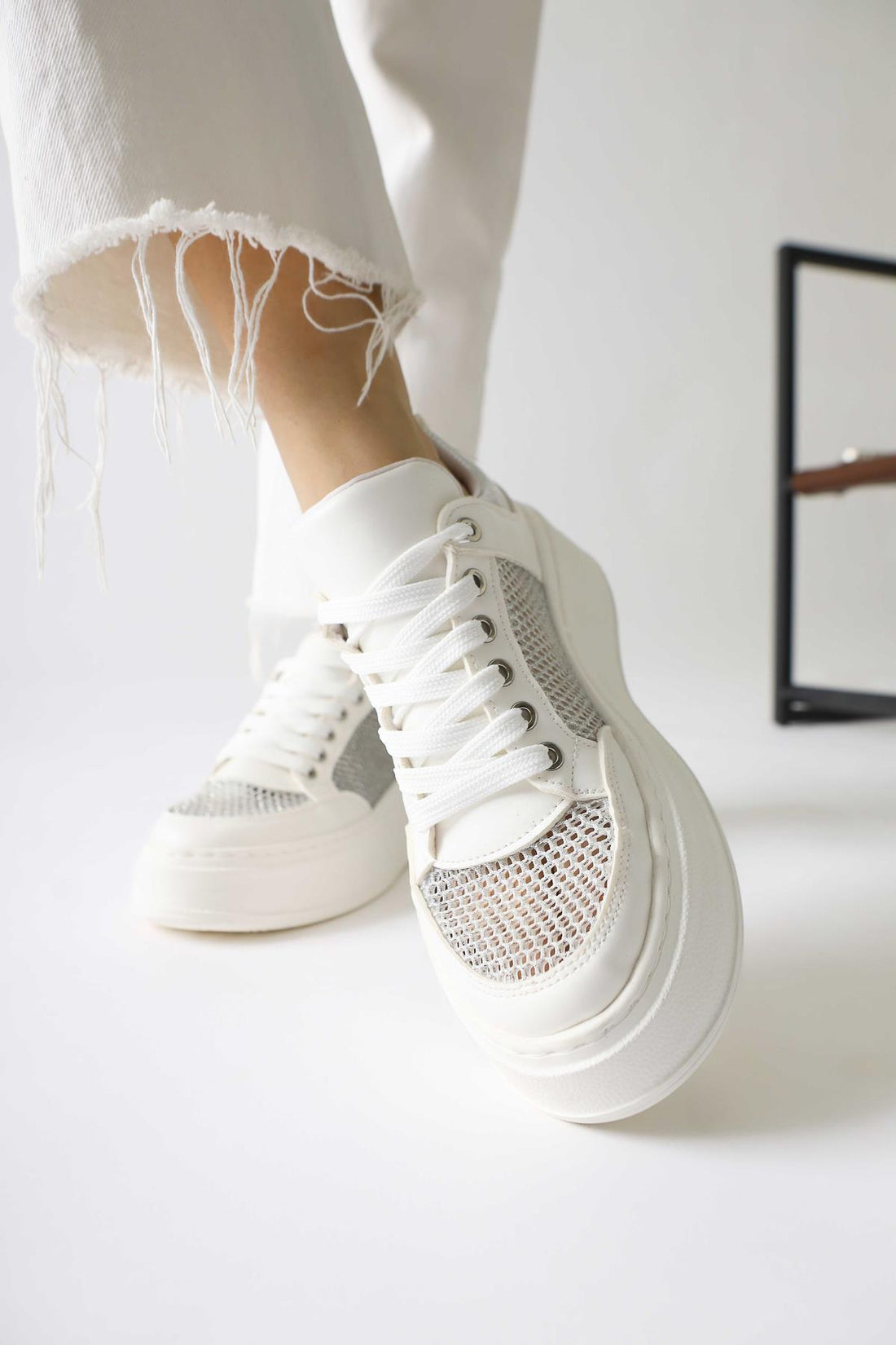 Emilina Beyaz Fileli Bağcıklı Sneakers