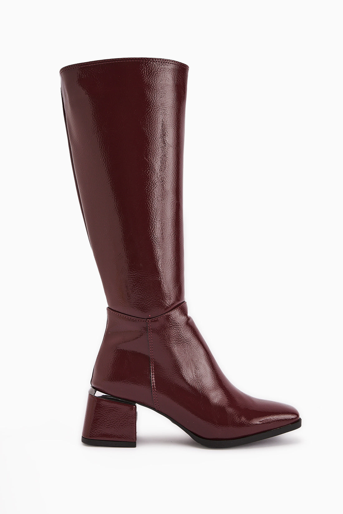 Miami Bordo Kırışık Rugan Küt Burunlu Çizme