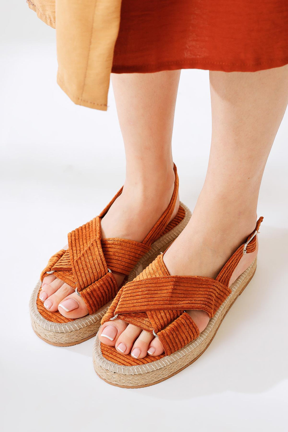 Iris Taba Kadife Çapraz Bantlı Sandalet