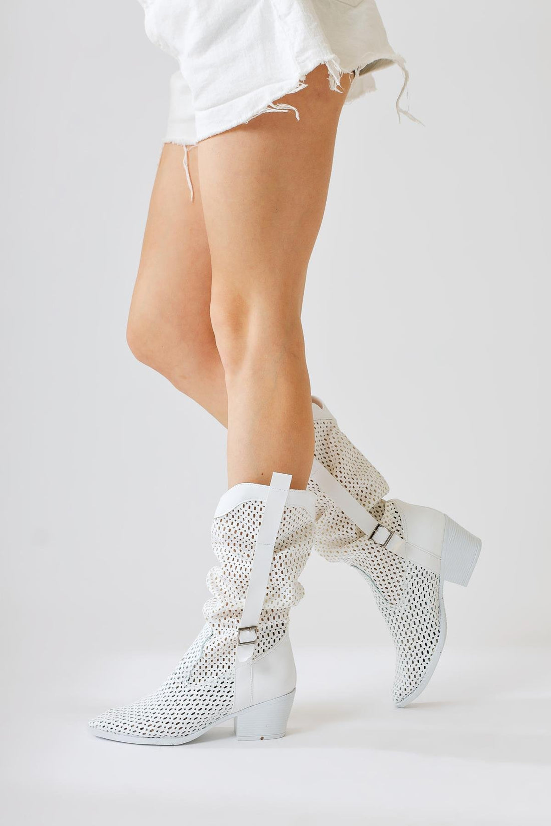 Orietta Beyaz Lazer Kesim Körüklü Yazlık Çizme