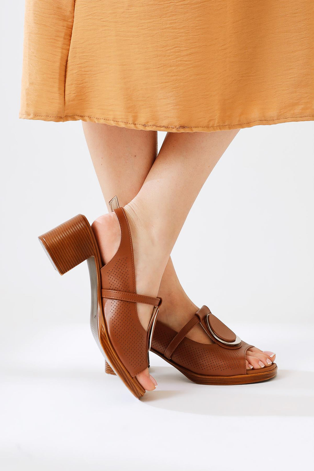 Shelby Taba Toka Detaylı Topuklu Sandalet
