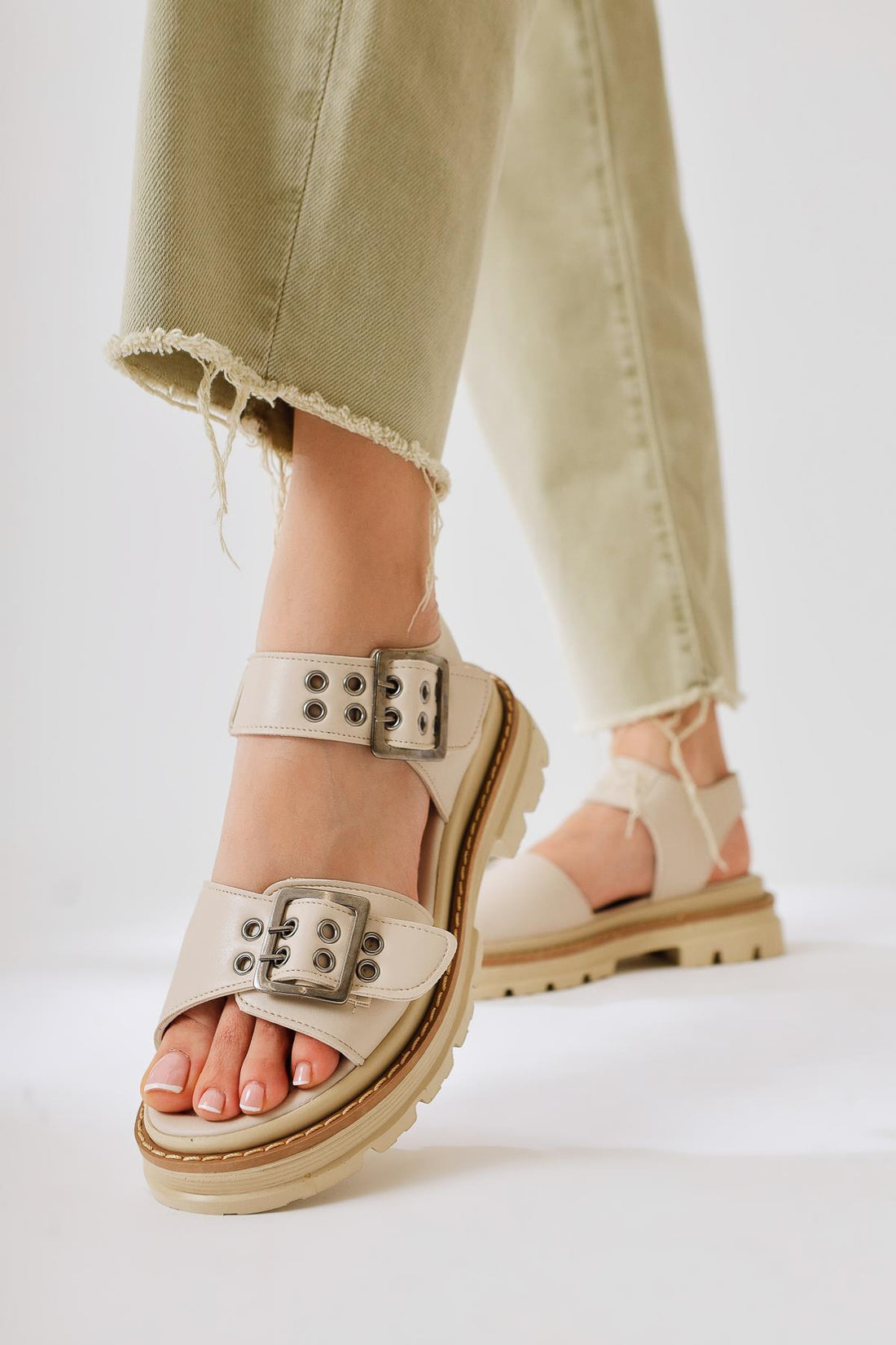 Tamera Bej Toka Detay Kalın Tabanlı Sandalet