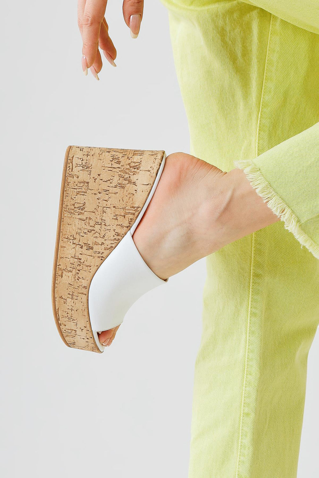 Riya Beyaz Kalın Mantar Tabanlı Terlik