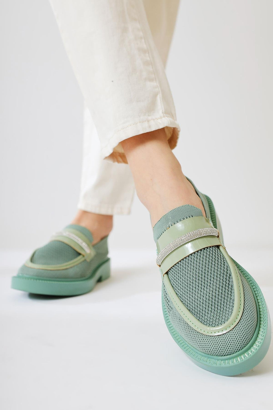 Micka Yeşil Örgü Rugan Detaylı Taş Bantlı Günlük Ayakkabı