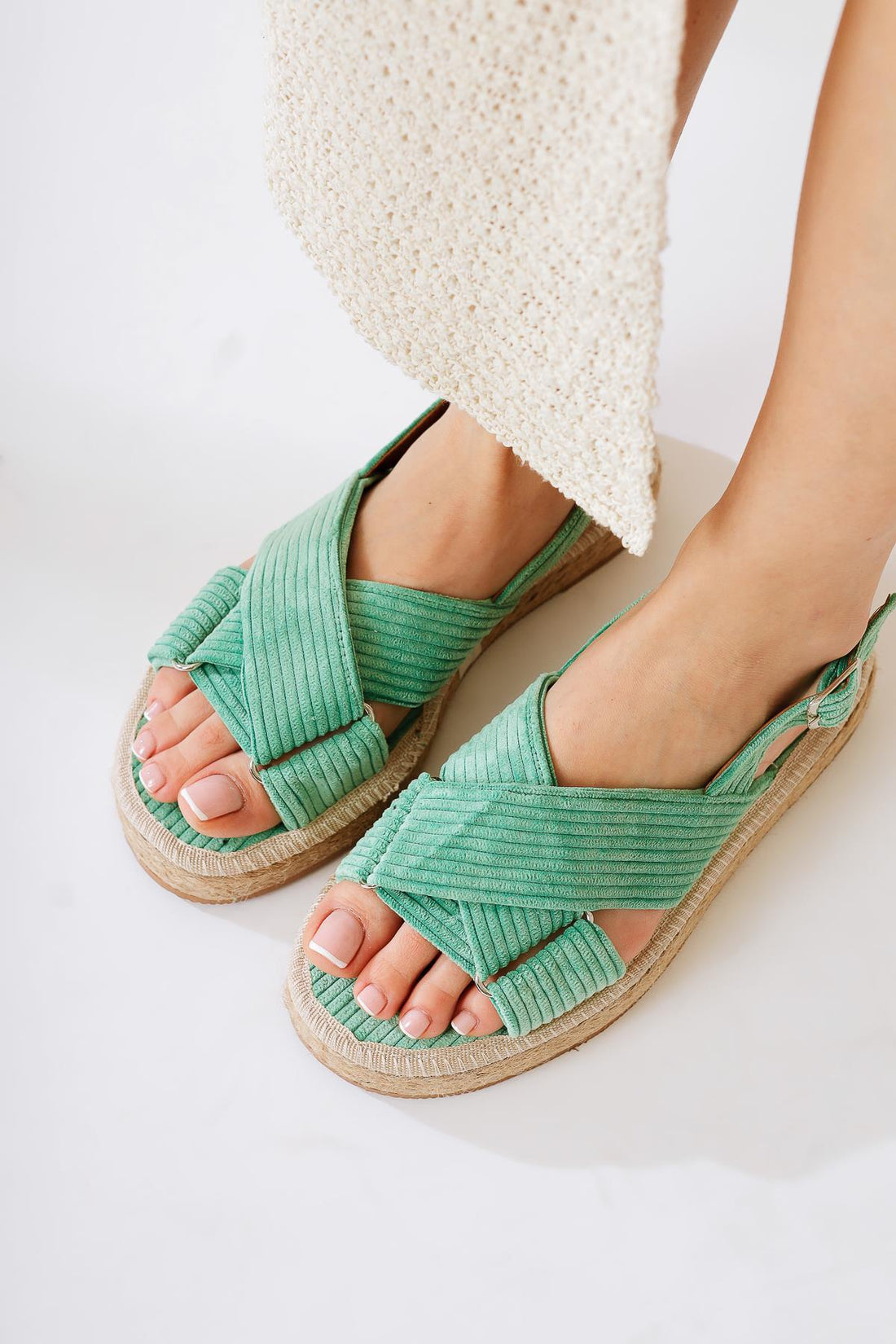 Iris Haki Kadife Çapraz Bantlı Sandalet