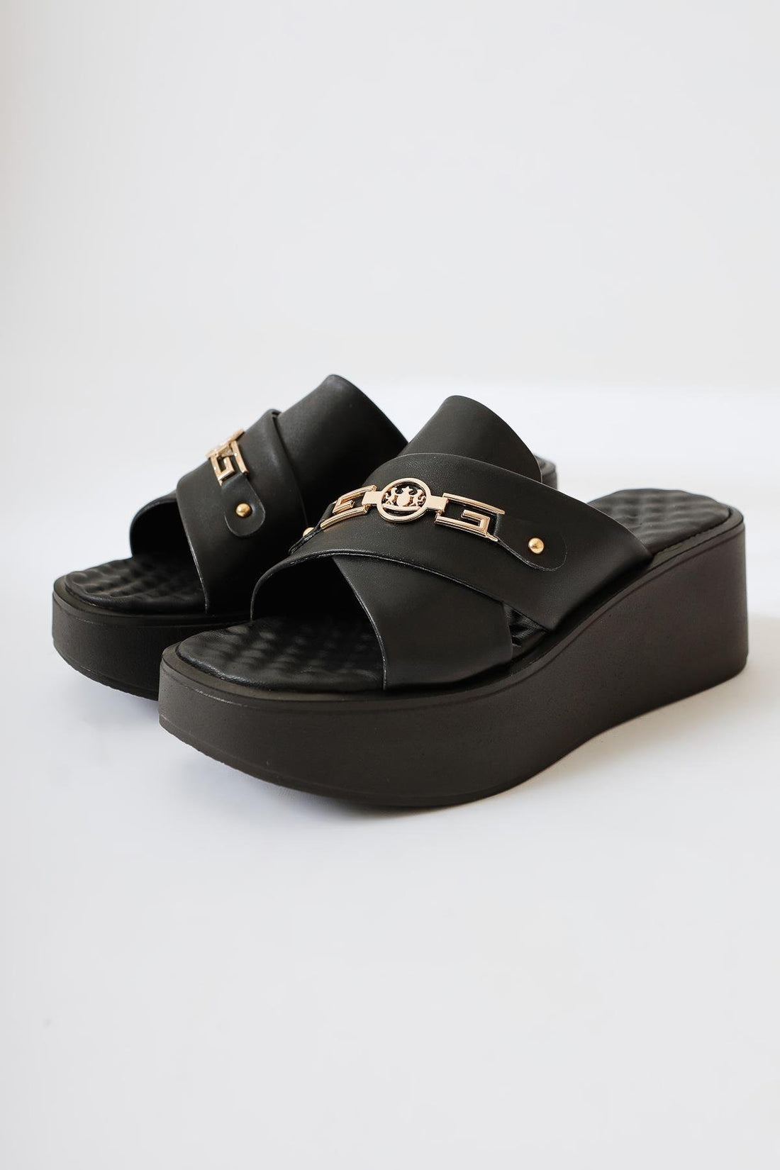 Stanny Siyah Çapraz Bantlı Toka Detaylı Kalın Tabanlı Terlik