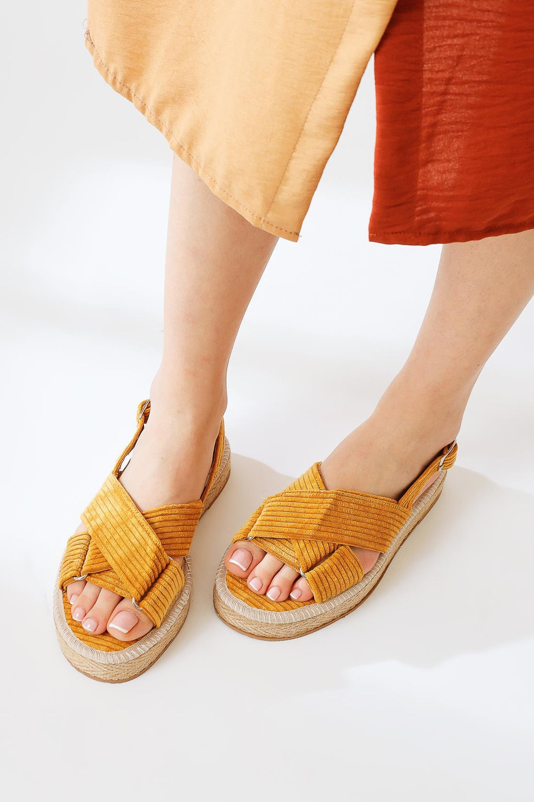 Iris Hardal Kadife Çapraz Bantlı Sandalet