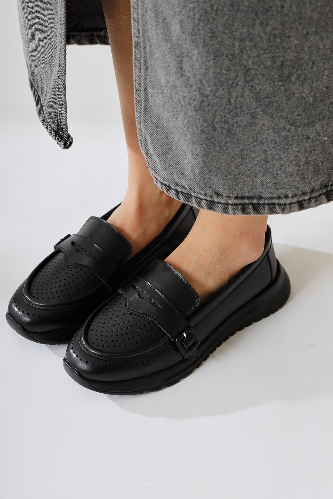 Zain Siyah Lazer Delikli Toka Detaylı Babet