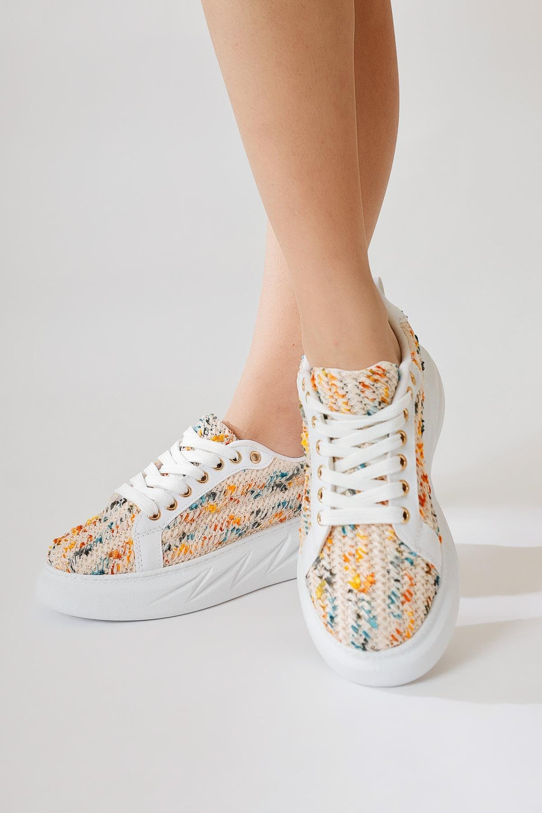 Silfa Gök Kuşağı Örgü Desenli Yüksek Taban Bağcıklı Sneakers