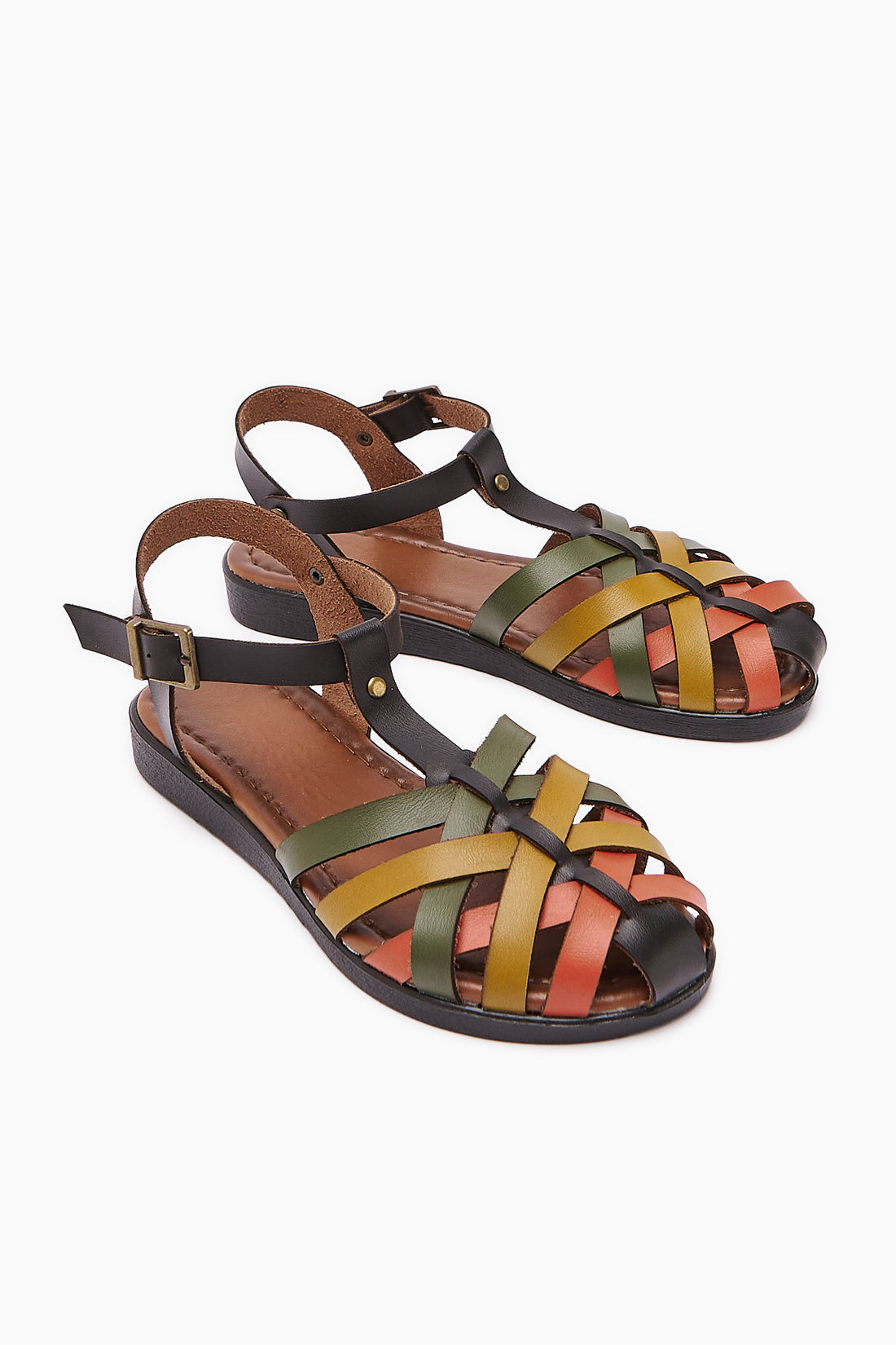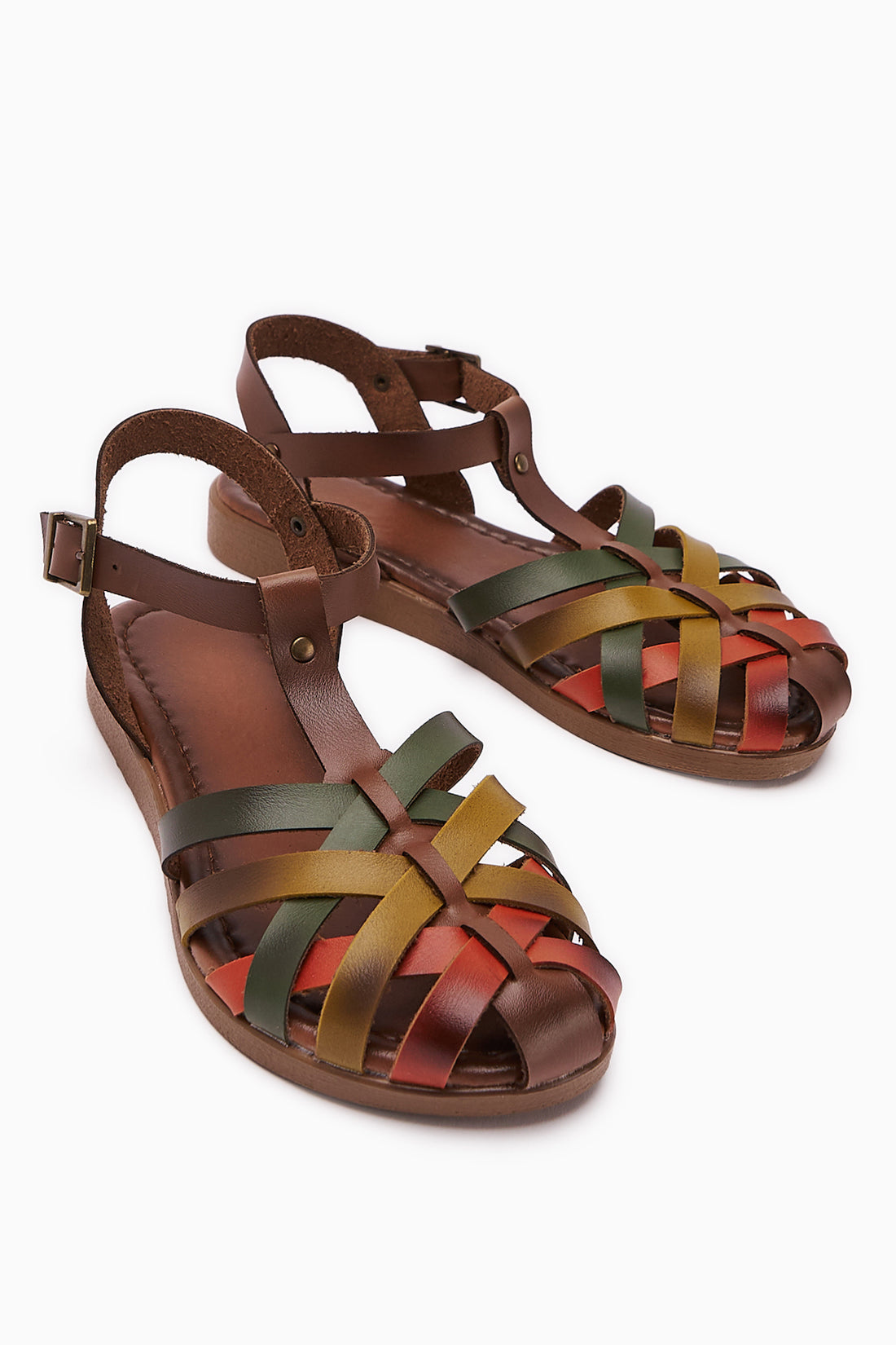 Hakiki Deri Agi Taba Çapraz Örgü Bantlı Sandalet