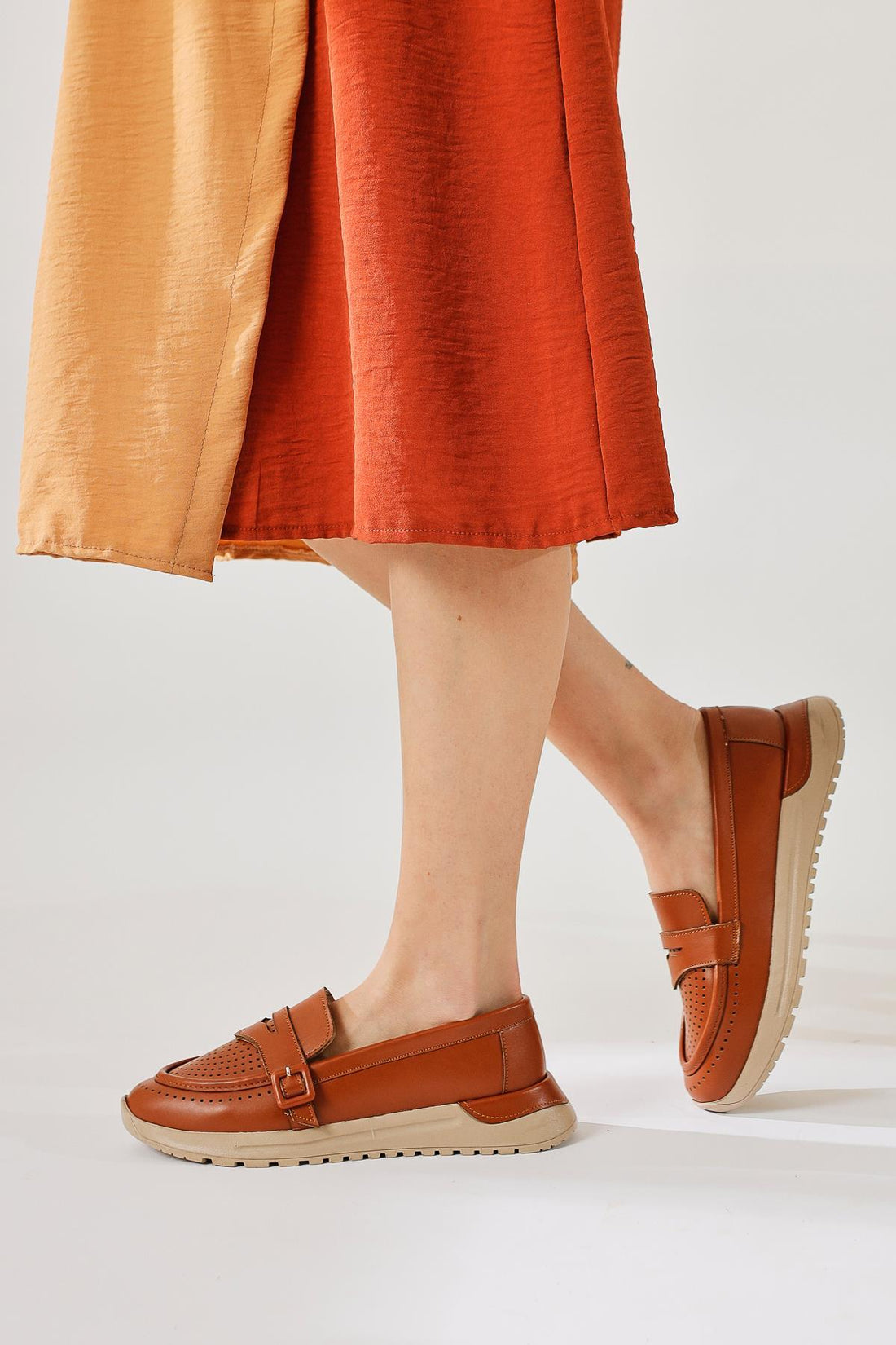 Vidya Taba Süet Lazer Delikli Çift Toka Detaylı Topuk Destekli Babet