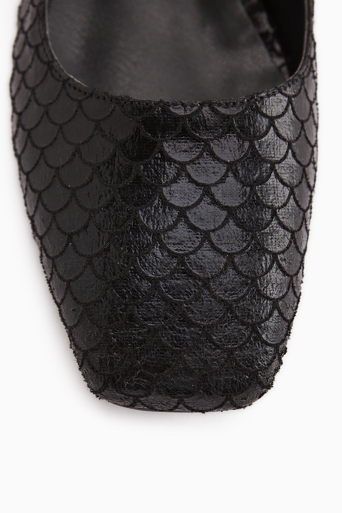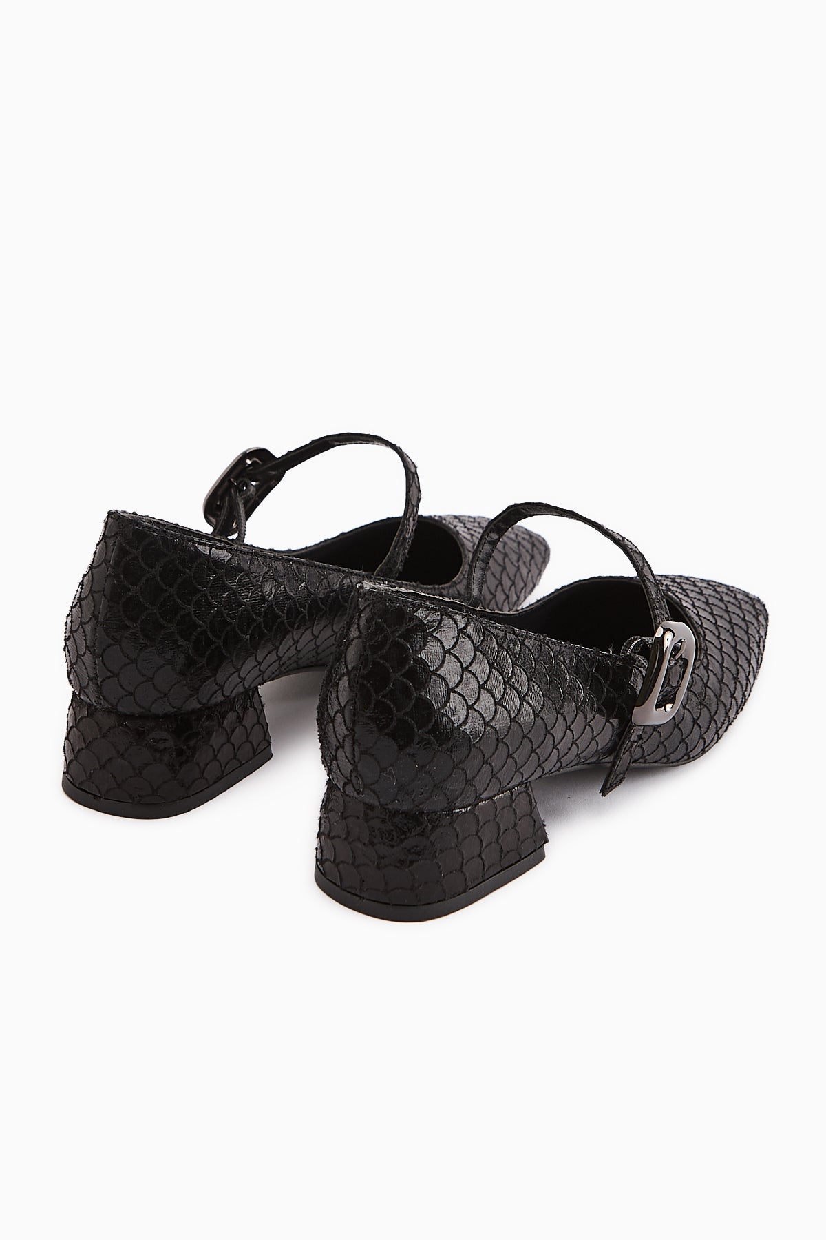 Abby Siyah Balık Pulu Dokulu Küt Burunlu Toka Detaylı Günlük Ayakkabı