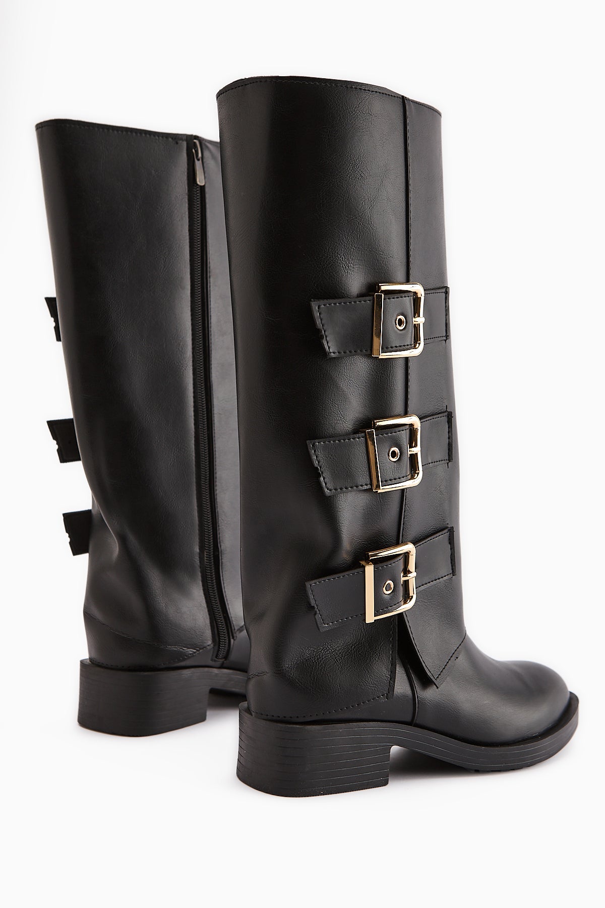Adelina Siyah Deri Kemerli Kadın Biker Çizme