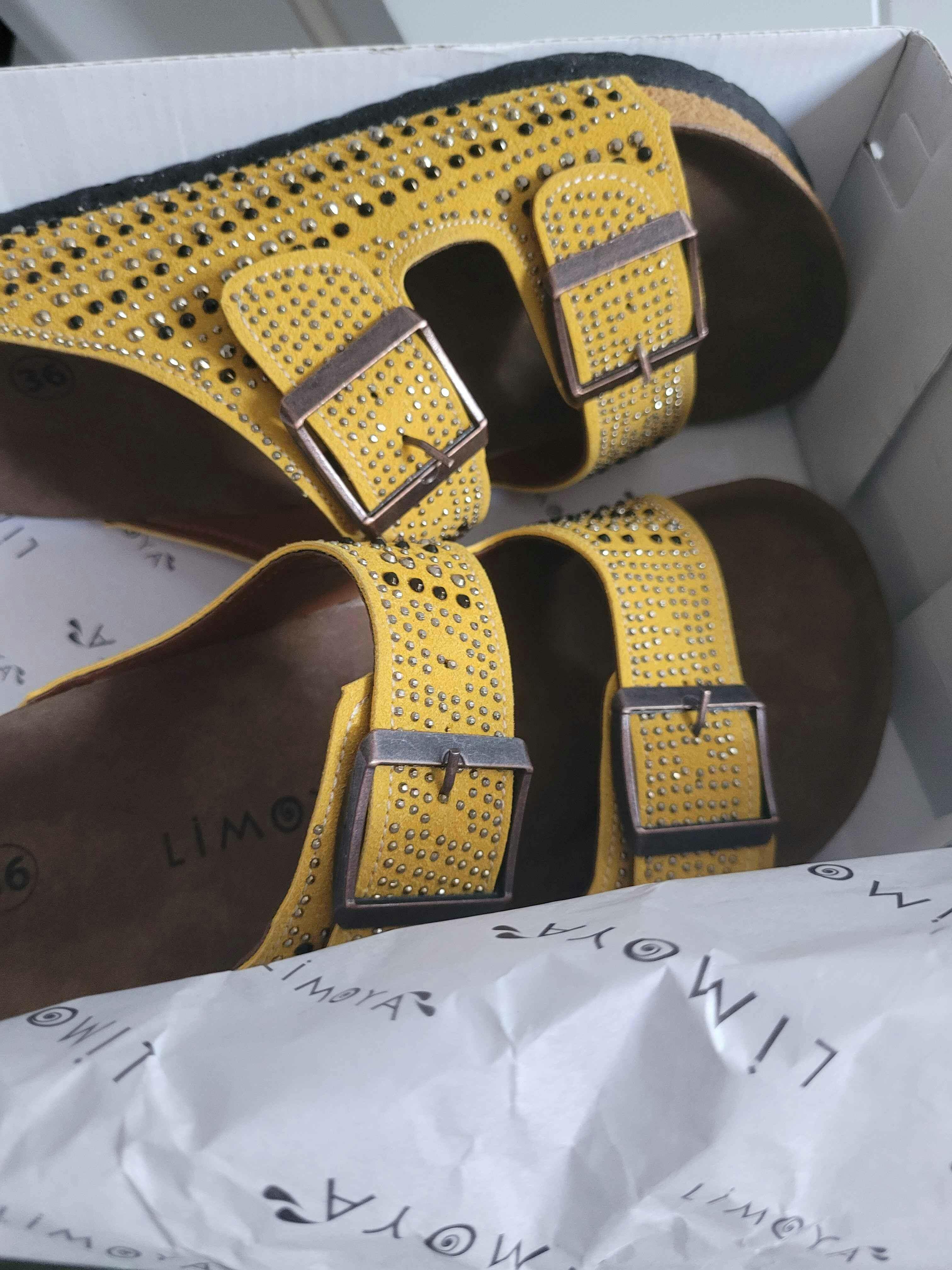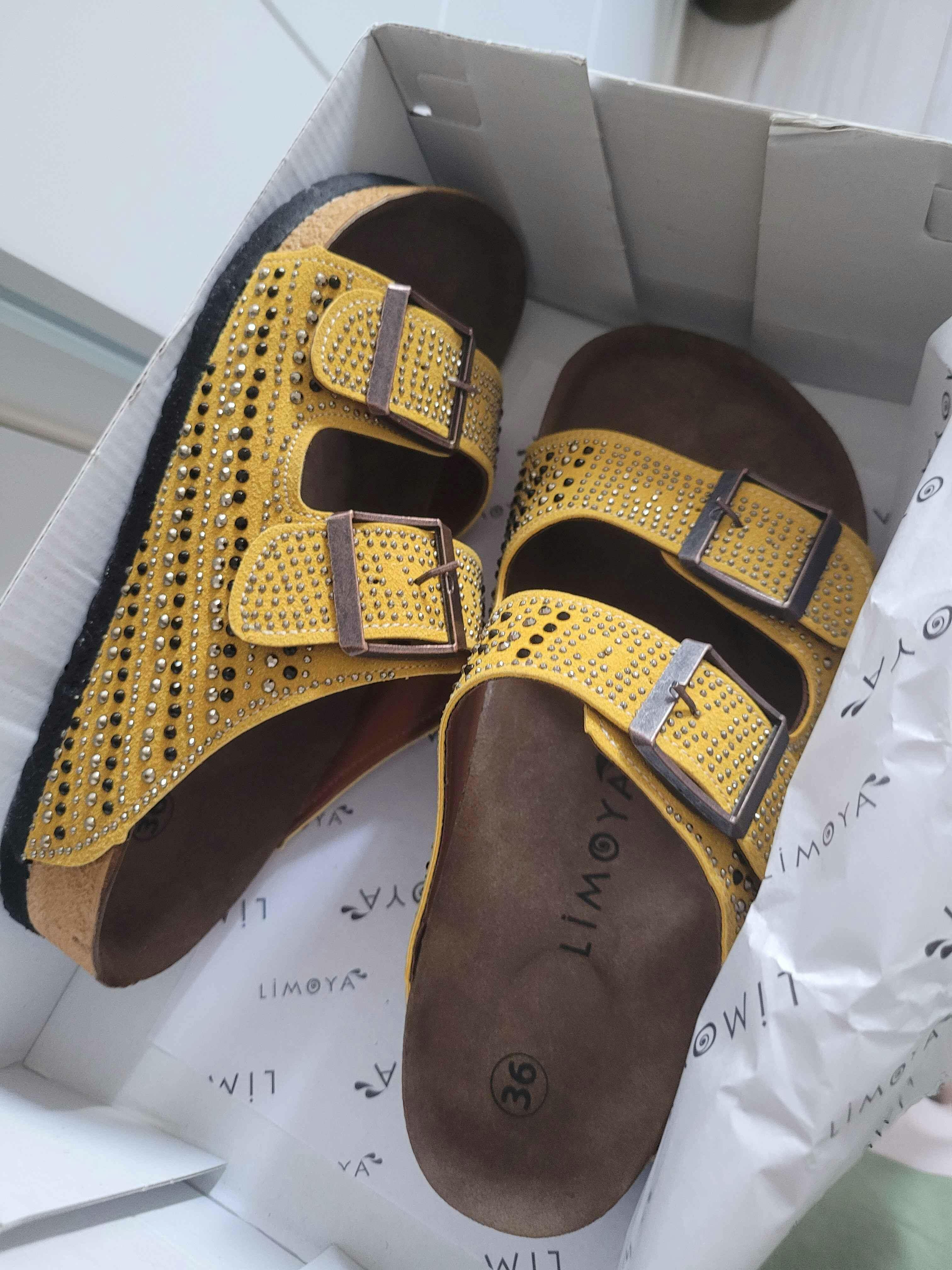Aire Sarı Çift Bantlı Taş Detaylı Terlik