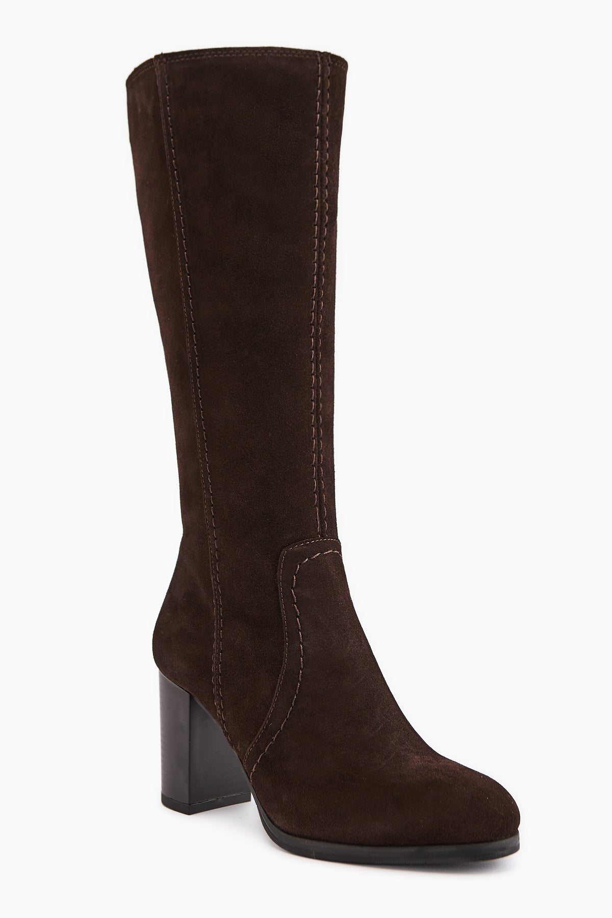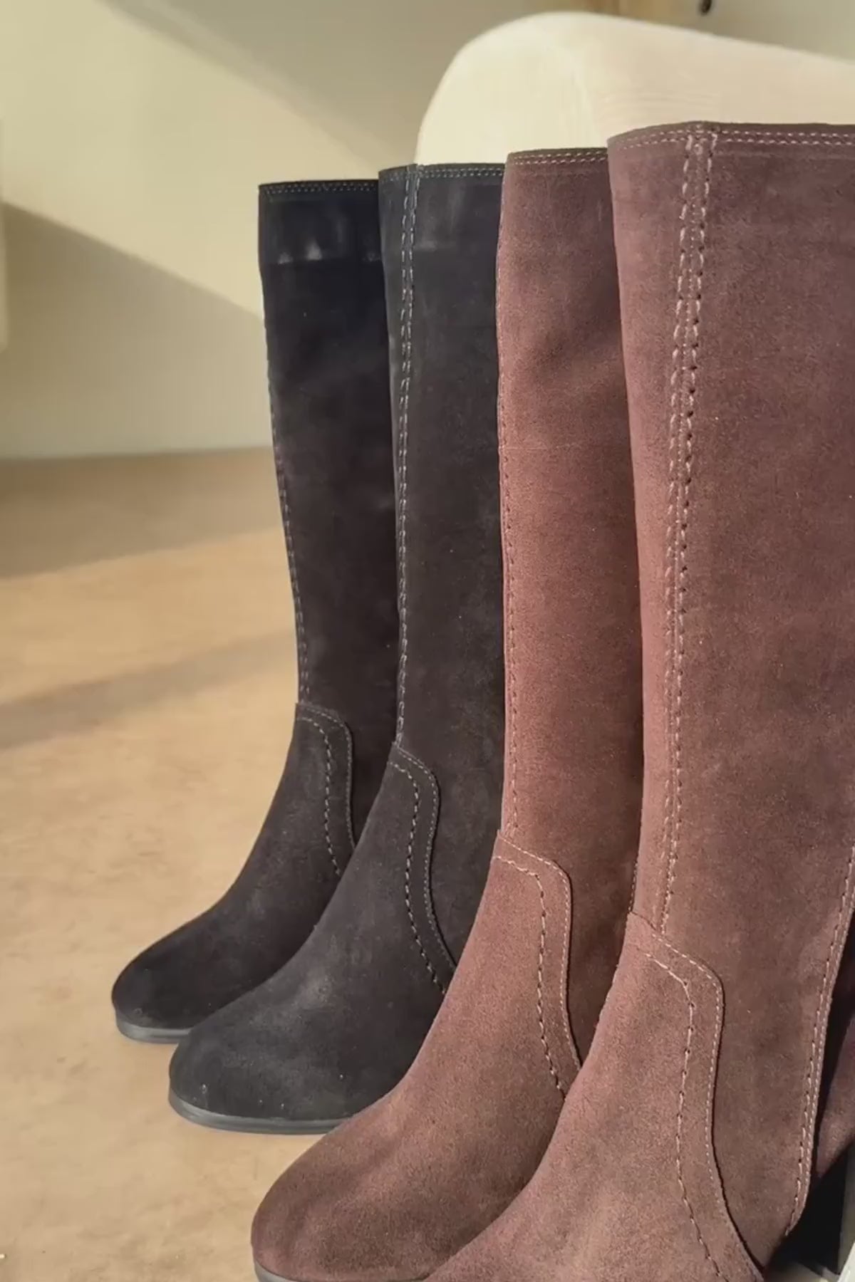Aleen Hakiki Deri Kahve Süet Topuklu Kadın Çizme