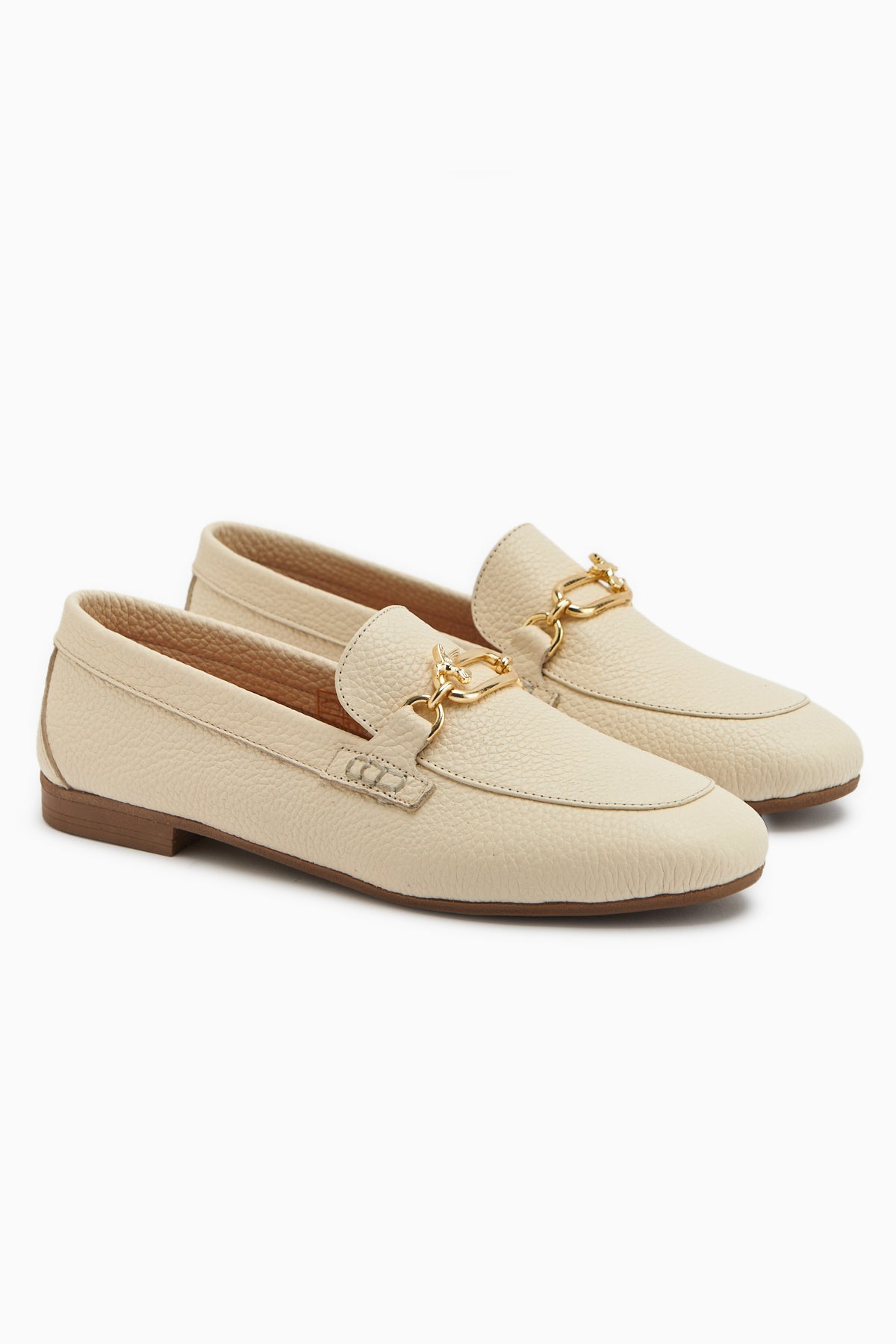 Alessa Hakiki Deri Bej Tokalı Loafer Kadın Günlük Makosen Ayakkabı
